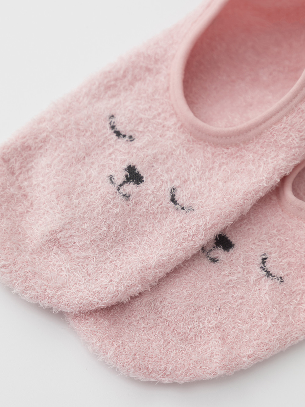 Тёплые следки для девочки с формованной пяткой и эластичной резинкой по краю. На подошве резиновые стопперы. Украшены рисунком. Изделие сохраняет форму и стойкий цвет после многочисленных стирок.
