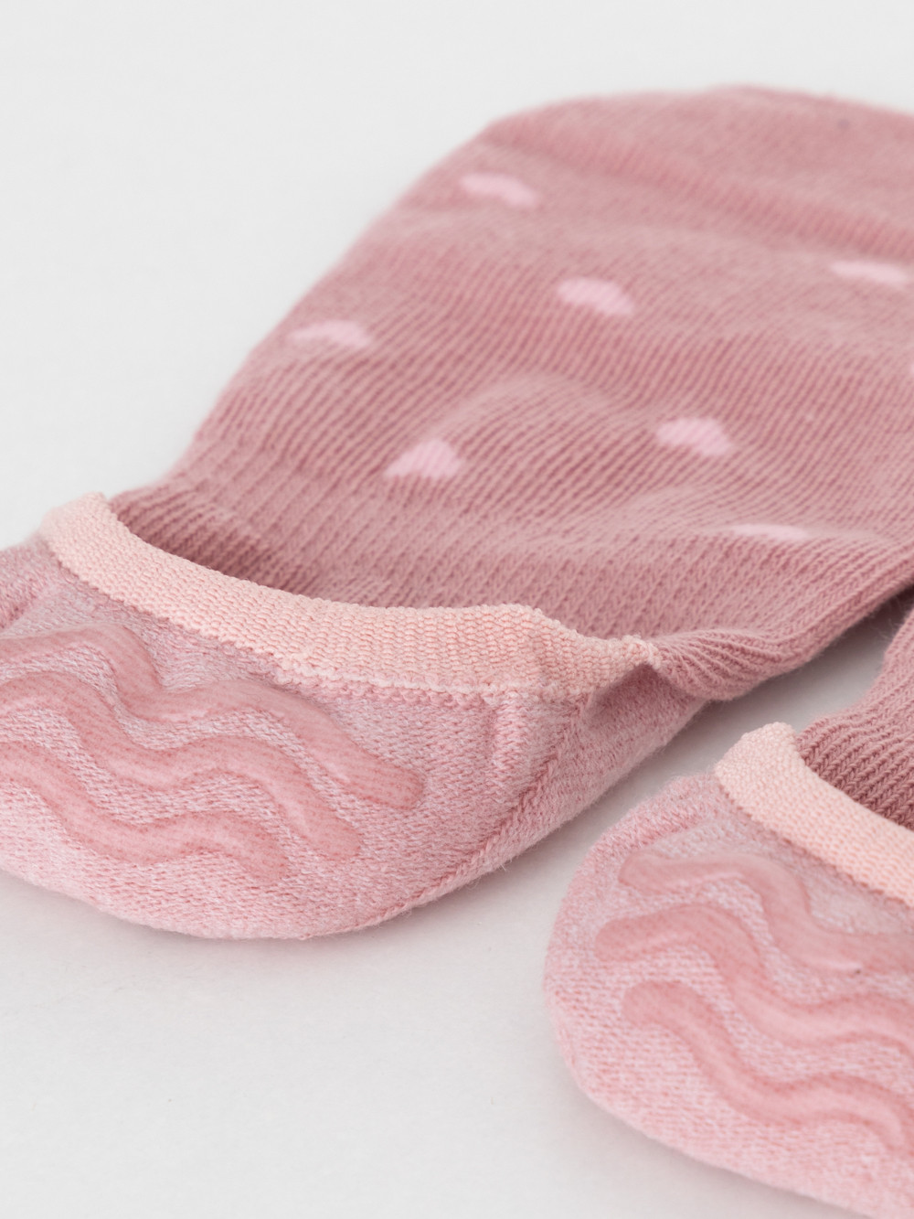 Короткие носки-следки для девочки. Эластичная резинка по краю. Украшены рисунком в сердечко.