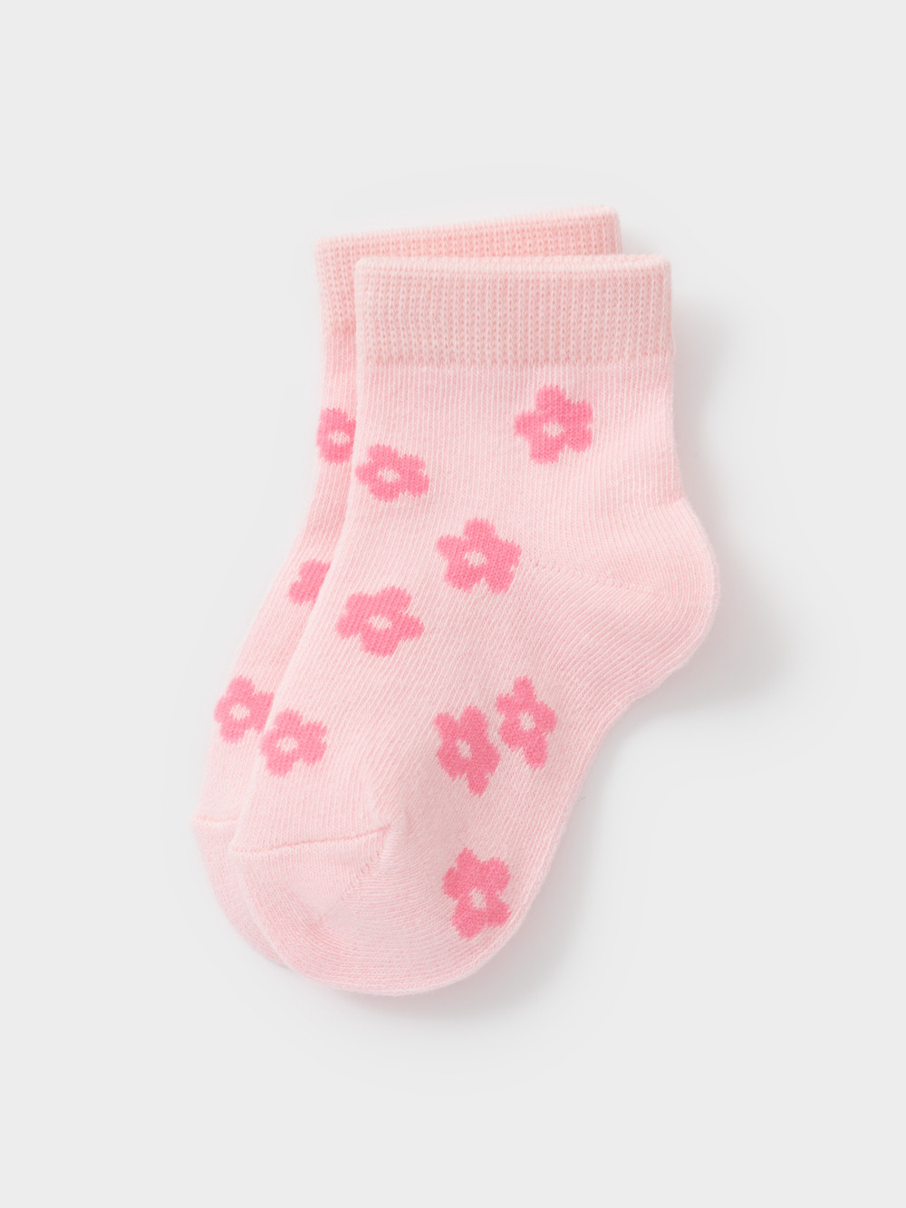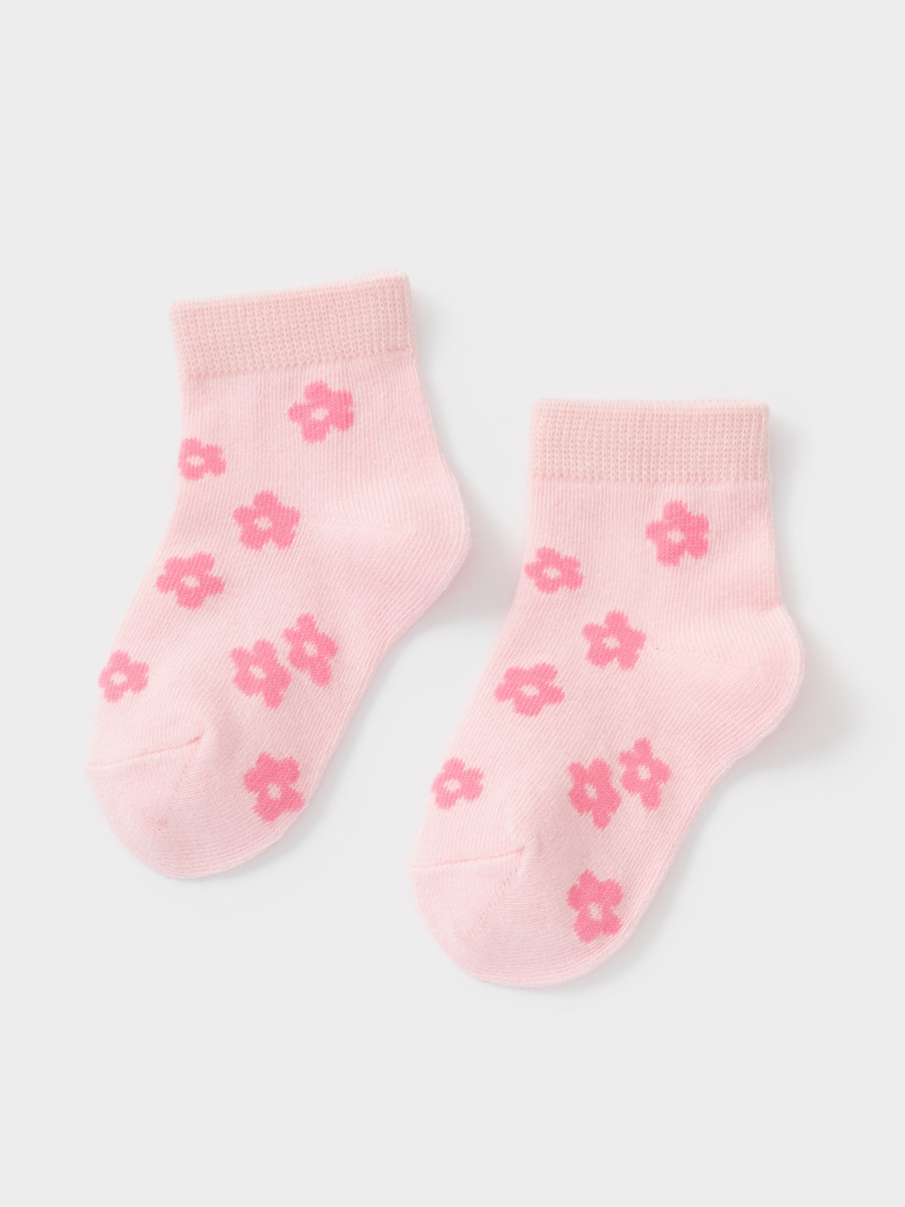 Носки короткие детские с формованной пяткой и эластичной резинкой по краю. Украшены рисунком. Изделие сохраняет форму и стойкий цвет после многочисленных стирок.