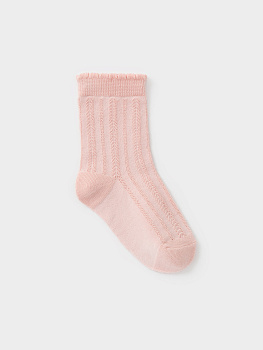 Носки длинные для девочки с формованной пяткой и эластичной резинкой по краю. Связаны ажурным узором.