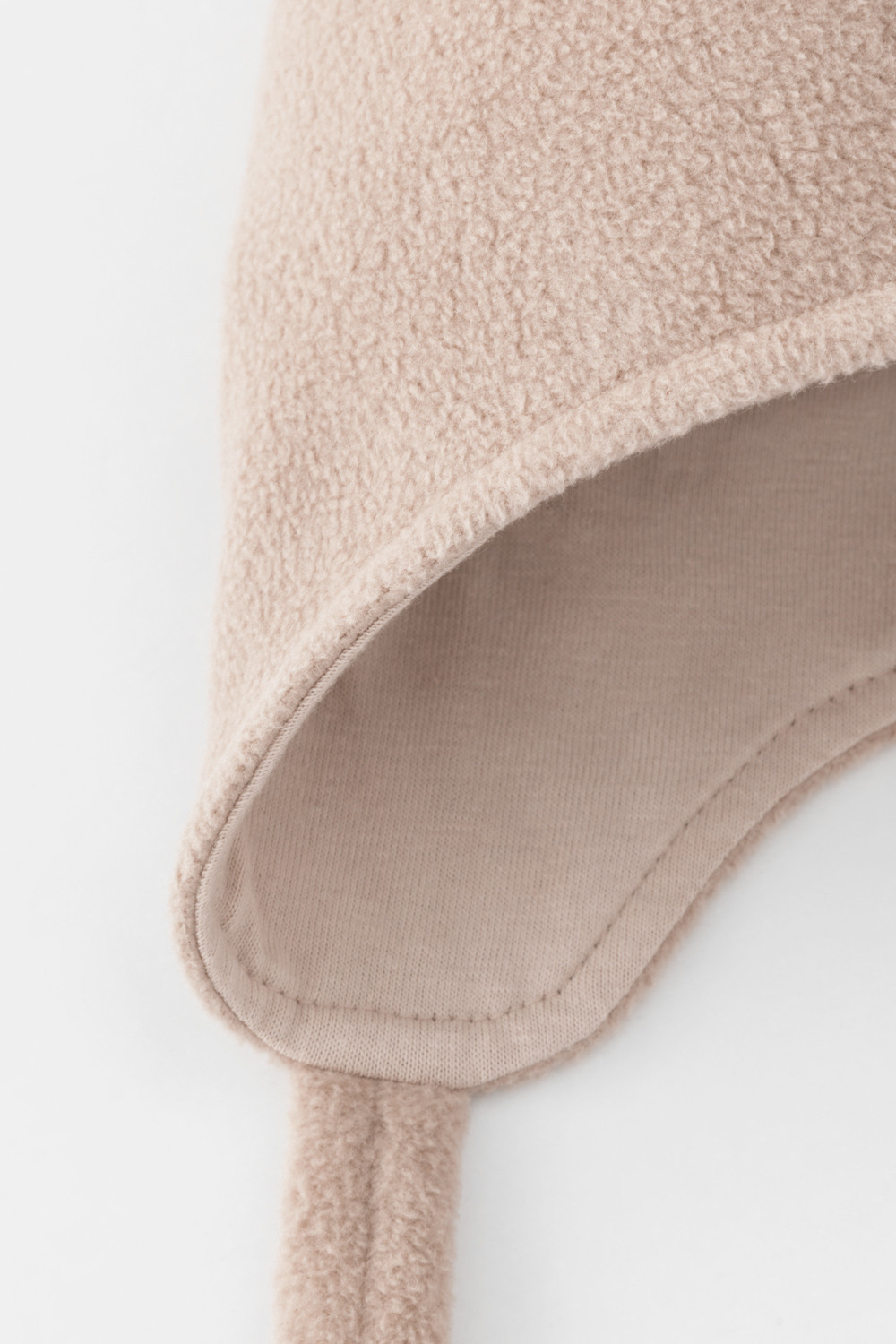 Флисовая шапка на завязках с мягким подкладом из натурального хлопка. Сверху украшена декоративными ушками из флиса. Спереди прикреплён светоотражатель, который обеспечивает дополнительную безопасность в тёмное время суток. Шапка сохраняет цвет и форму после многократных стирок.