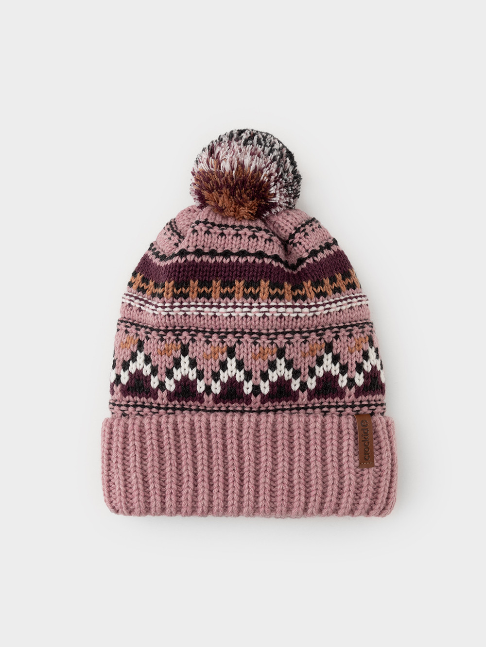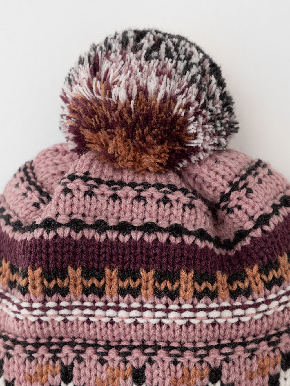 Тёплая зимняя шапка с подкладом из хлопкового трикотажа. Верх выполнен из полушерстяной пряжи. На макушке помпон.