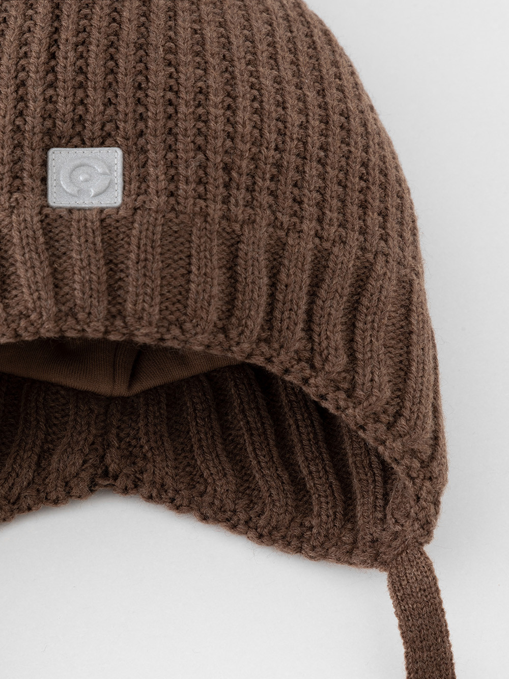Шапка из полушерсти на завязках с синтепоновым утеплителем. Подклад из натурального хлопка. Полностью закрывает голову, уши и шею, защищая ребёнка от холодного воздуха и ветра. На макушке помпон. Изделие сохраняет форму и стойкий цвет после многочисленных стирок.