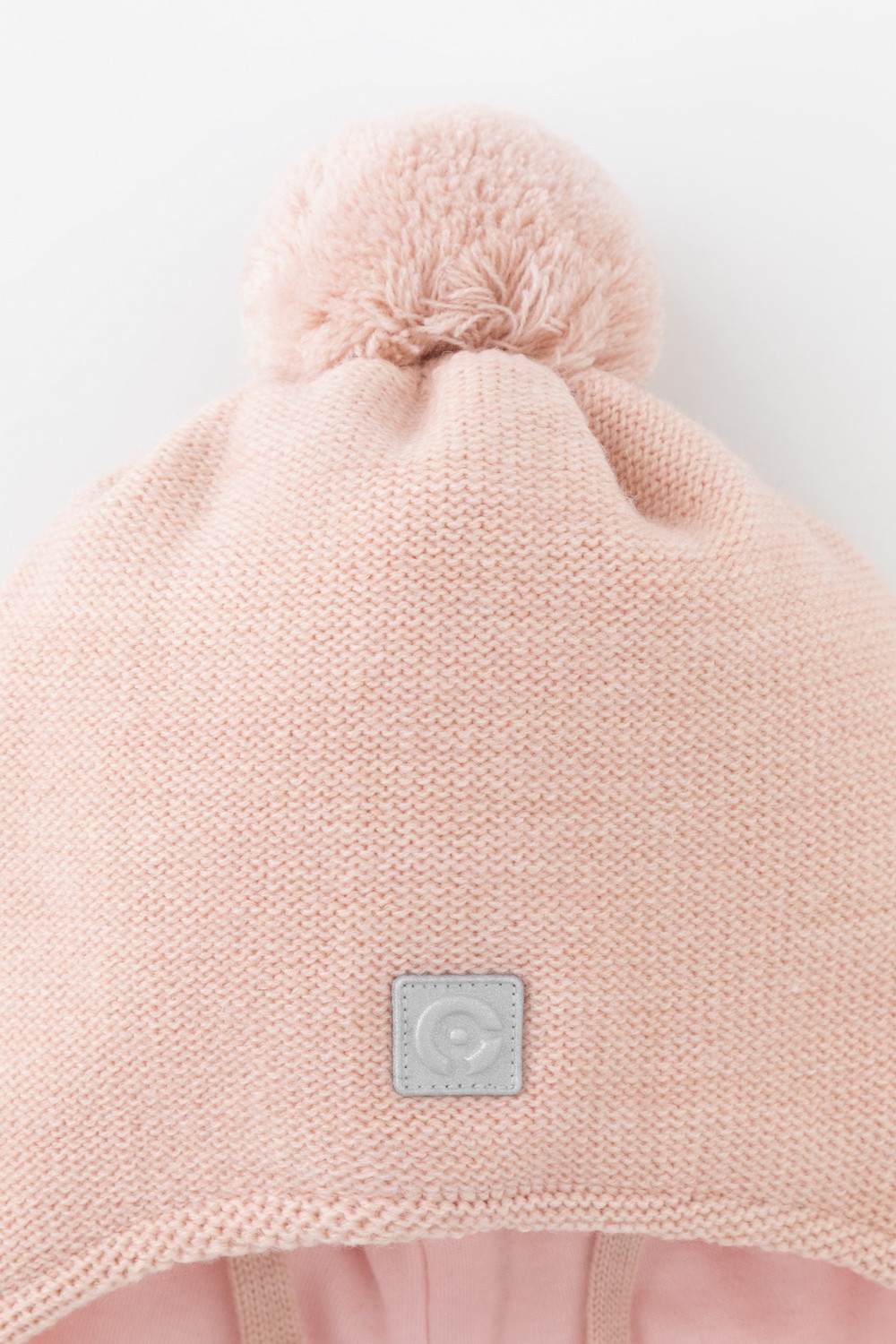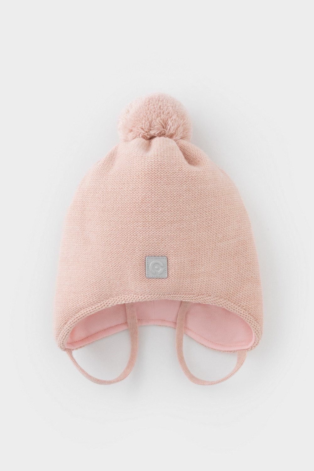 Шапка для девочки из полушерсти на завязках с синтепоновым утеплителем. Подклад из натурального хлопка. Полностью закрывает голову, уши и шею, защищая ребёнка от холодного воздуха и ветра. На макушке помпон. Изделие сохраняет форму и стойкий цвет после многочисленных стирок.