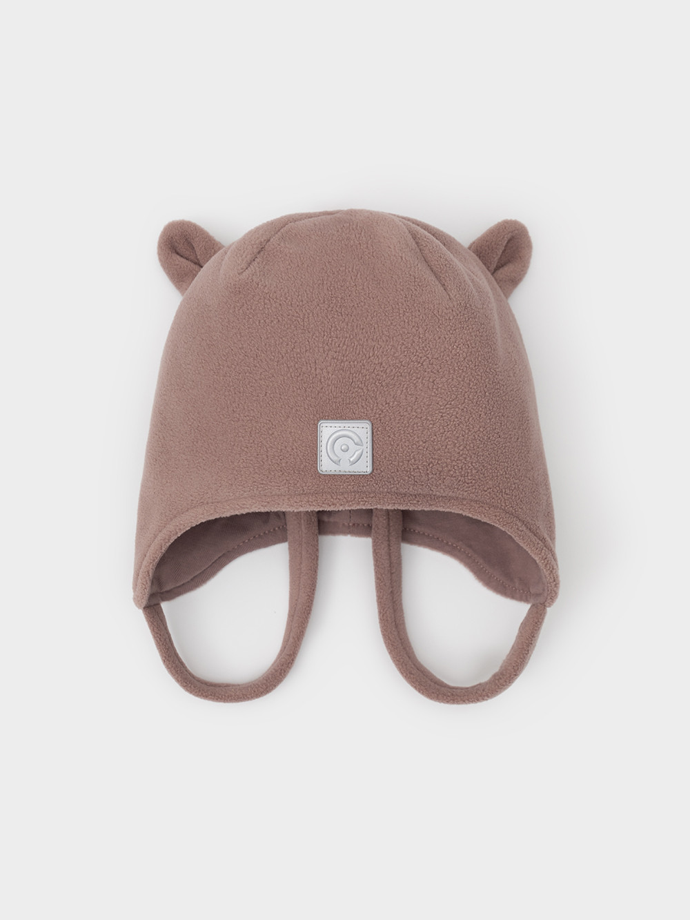 Флисовая шапка на завязках с мягким подкладом из натурального хлопка. Сверху украшена декоративными ушками из флиса. Спереди прикреплён светоотражатель, который обеспечивает дополнительную безопасность в тёмное время суток. Шапка сохраняет цвет и форму после многократных стирок.