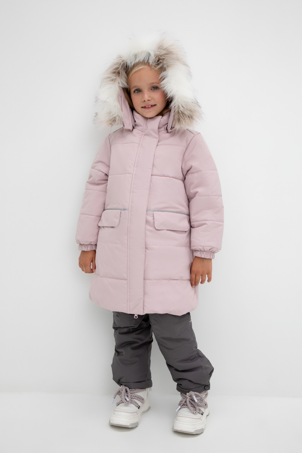 • Отстегивающаяся меховая опушка из искусственного меха на молнии