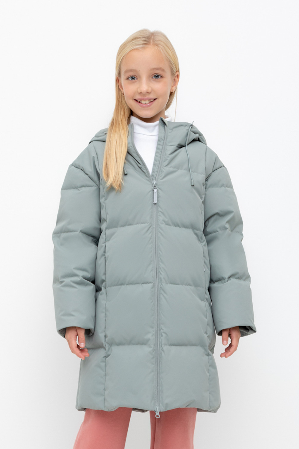 Пальто для девочки с натуральным утеплителем из гипоаллергенного гусиного пуха (70%) и пера (30%). Рекомендованный температурный режим - от -5° до -30°.