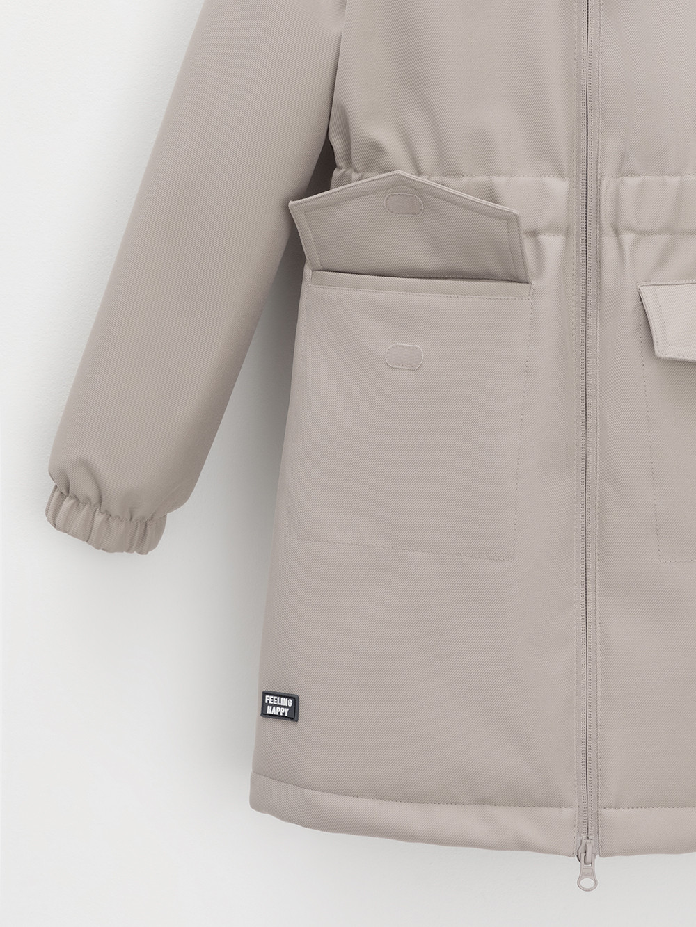 Пальто для девочки с утеплителем SEE®: 120 г/м2. Выполнено из мембранной ткани 1000/1000 с дополнительной тефлоновой обработкой. Данный вид обработки предохраняет изделие от загрязнения и хорошо отталкивает влагу. Подклад из 100% полиэстера. У изделия предусмотрена защита подбородка. Несъёмный капюшон имеет эластичную утяжку со стопперами. Низ рукавов на эластичной резинке для лучшего прилегания. Утяжка по талии обеспечивает идеальную посадку по фигуре. По бокам два кармана на липучках. Во всех изделиях верхнего ассортимента для безопасности ребёнка предусмотрены светоотражающие элементы.