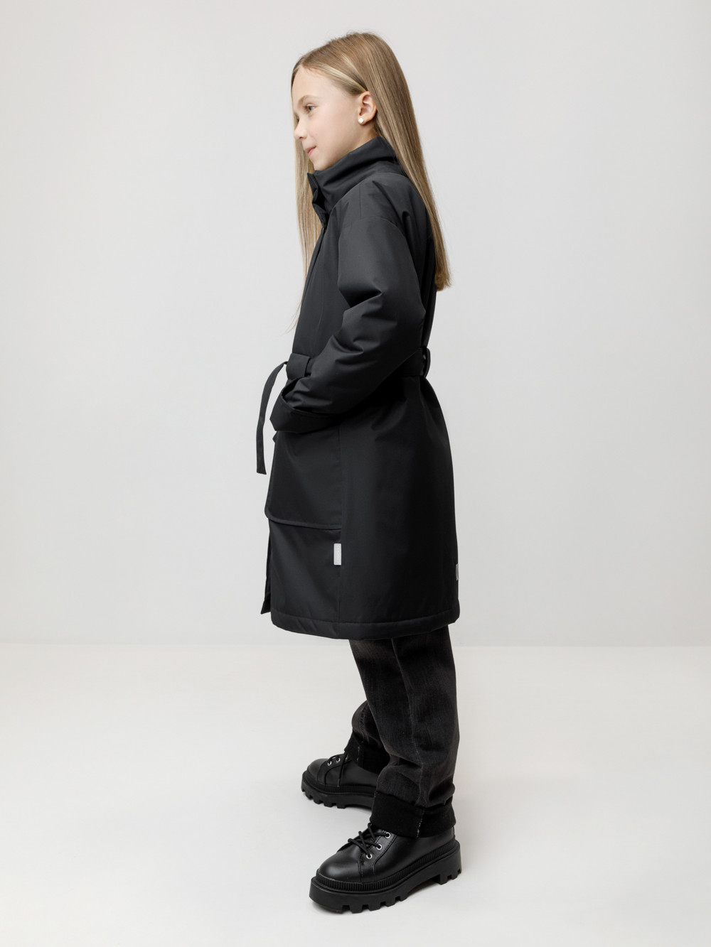 Пальто для девочки с утеплителем Fellex®: 120 г/м2. Выполнено из мембранной ткани с дополнительной тефлоновой обработкой. Верхняя мембранная ткань 1000/1000 с тефлоновым покрытием отталкивает воду и грязь и обладает «дышащими» свойствами. Подкладка выполнена из 100% полиэстера. Изделие имеет удобную застёжку на кнопки и высокий воротник с потайной магнитной кнопкой. Для регулировки по фигуре есть удобный пояс, который вставляется в петли. Отвороты на рукавах выполнены из основной ткани. По бокам два кармана. Во всех изделиях верхнего ассортимента для безопасности ребёнка предусмотрены светоотражающие элементы.