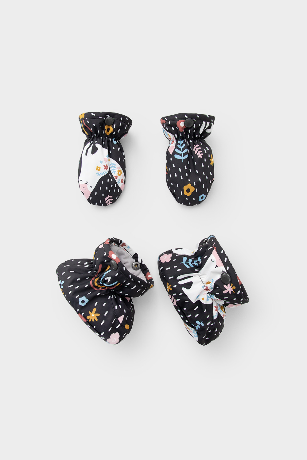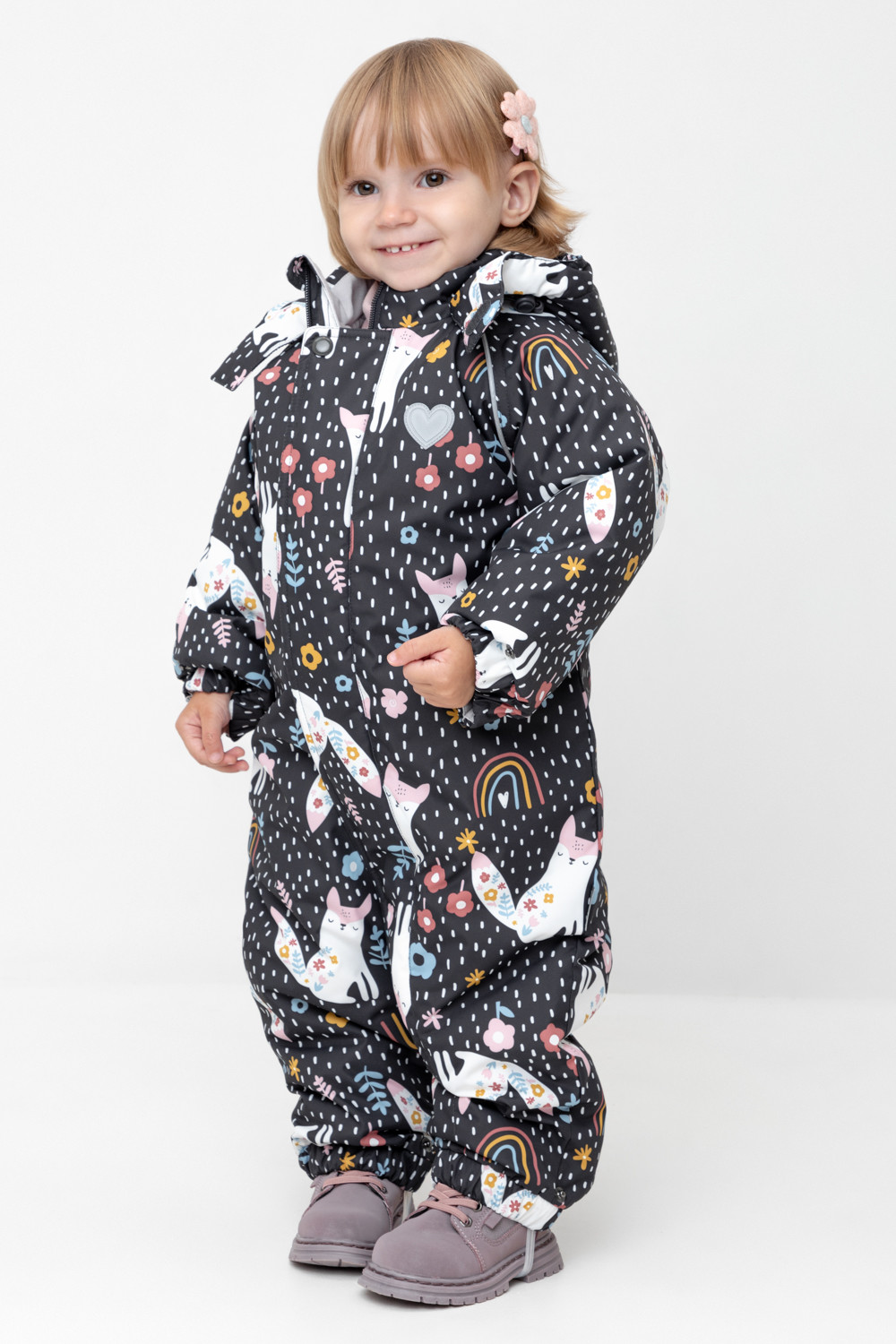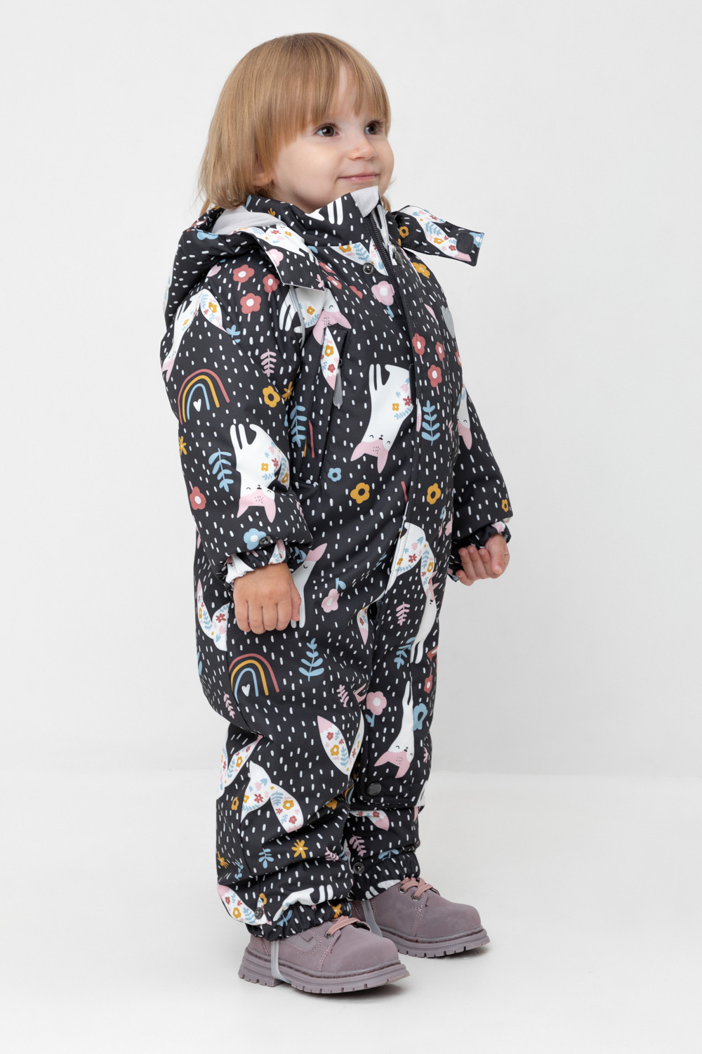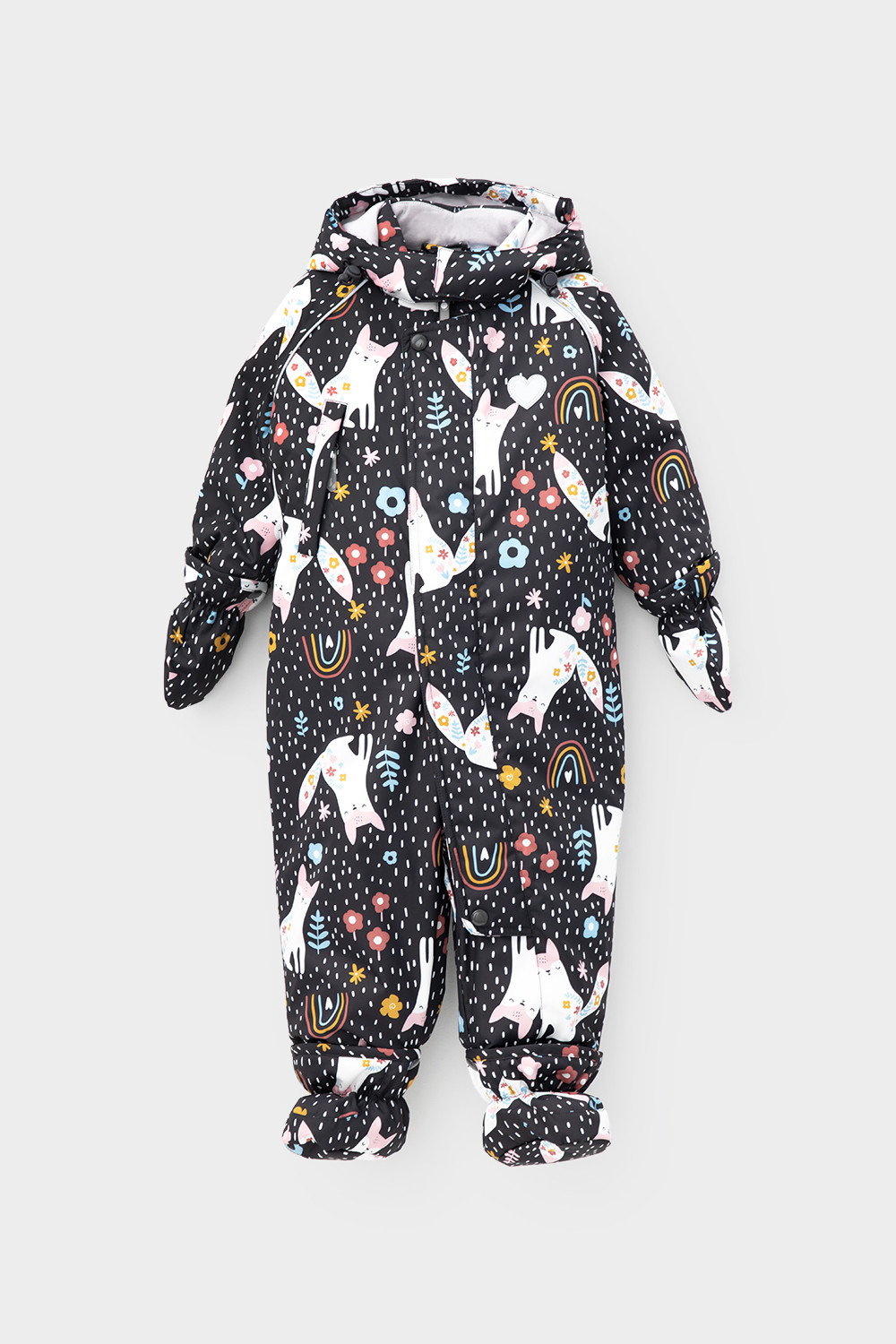 • Дополнительно в размерах 68-74, 74-80, 80-86 пристегивающиеся утепленные варежки и пинетки.