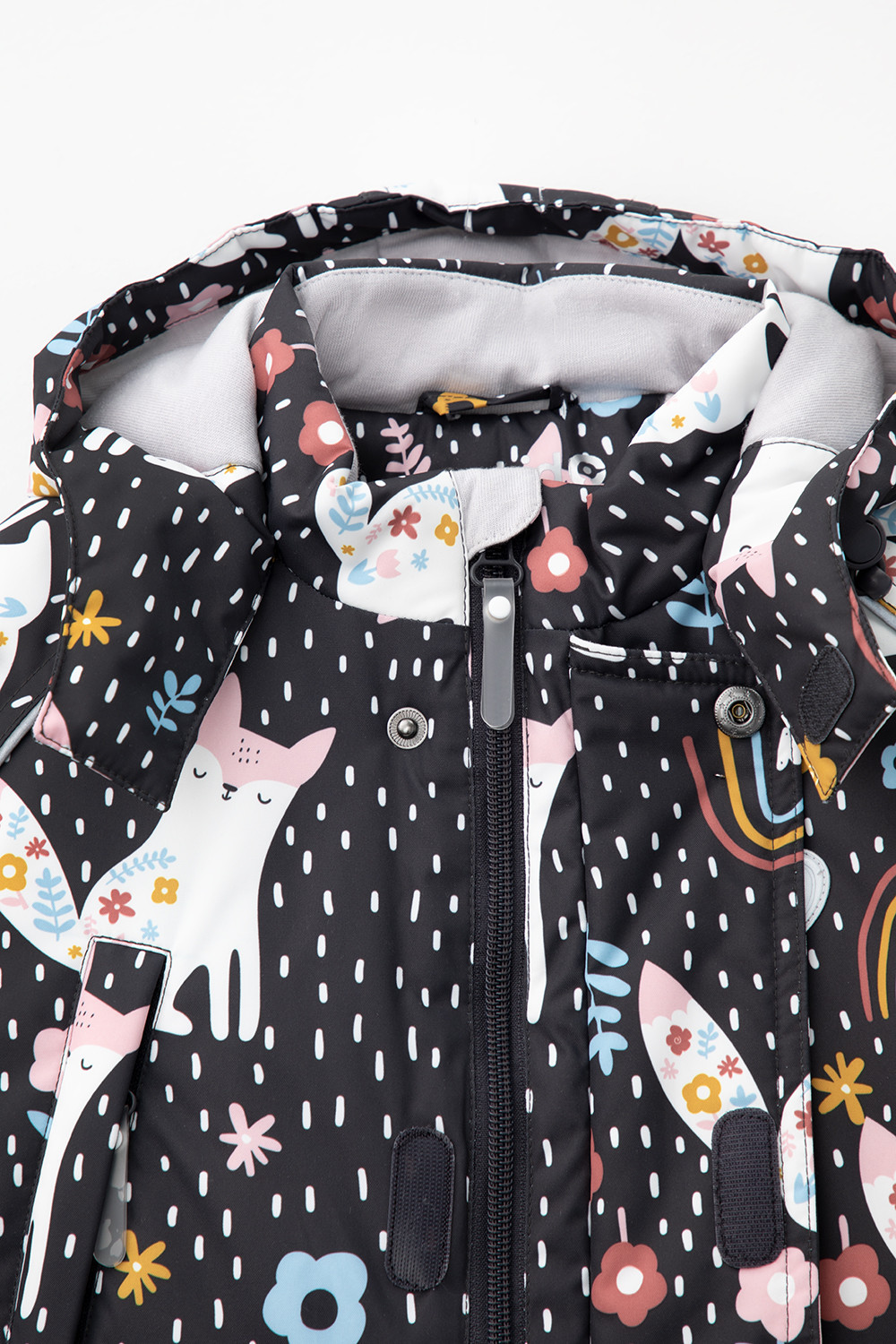• Несъёмный капюшон имеет эластичную утяжку со стопперами.