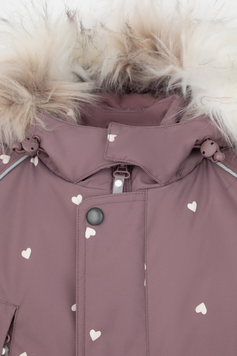 Зимний комбинезон ясельный с утеплителем SEE®: 250 г/м2. Выполнен из мембранной ткани с дополнительной тефлоновой обработкой, которая предохраняет изделие от загрязнений и отталкивает влагу. Подклад выполнен из 100% хлопка. Комбинезон застёгивается на молнию и внешнюю планку на липучках, предусмотрена защита подбородка. Несъёмный капюшон имеет эластичную утяжку со стопперами и отстёгивающийся мех на молнии. Резинка по спинке для лучшего прилегания. На груди карман на молнии. По рукавам и низу изделия эластичные манжеты, на ножках отстёгивающиеся силиконовые штрипки. В размерах 74-80 и 80-86 в комплекте идут рукавицы и пинетки. Во всех изделиях верхнего ассортимента для безопасности ребёнка предусмотрены светоотражающие элементы.