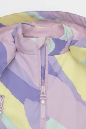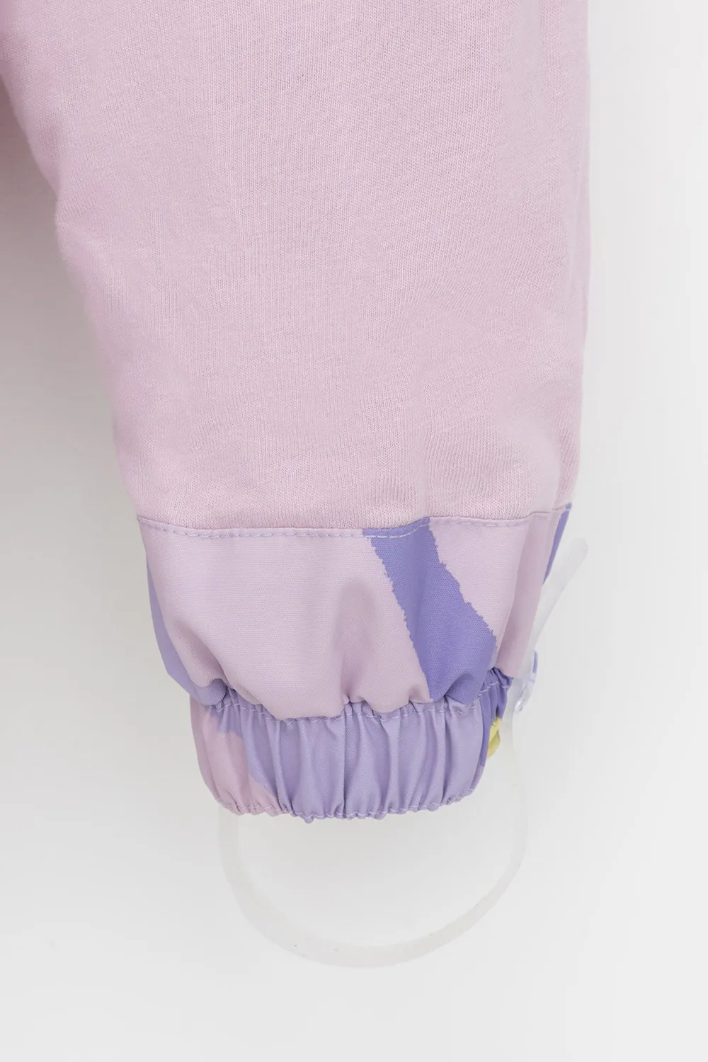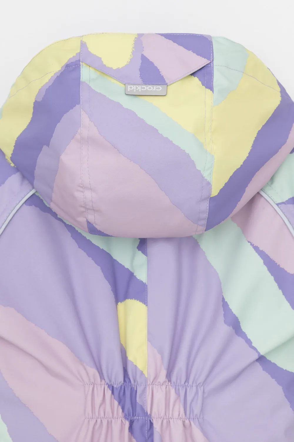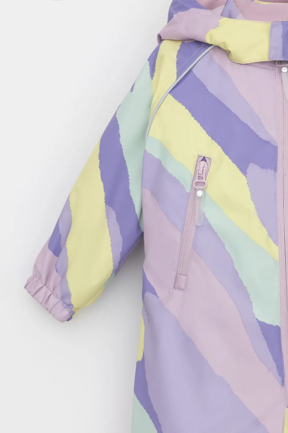 Ветровочный комбинезон ясельный из мембранной ткани с дополнительной тефлоновой обработкой. Данный вид обработки предохраняет изделие от загрязнения и лучше отводит влагу. Подклад из 100% хлопка. У изделия удлиненная молния для легкого одевания с защитой подбородка. Утяжка на капюшоне с потайными стопперами. По низу рукавов и брючин, а также на спинке изделия эластичная резинка для лучшего прилегания. Для фиксации комбинезона используются съемные силиконовые штрипки. В размерах 68-80 функциональные отвороты на рукавах и брючинах. Во всех изделиях верхнего ассортимента для безопасности ребенка предусмотрены светоотражающие элементы.