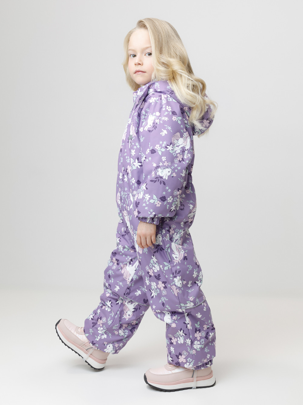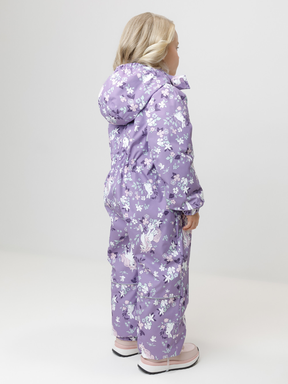 Демисезонный комбинезон для девочки с утеплителем SEE, 120 г/м2. Выполнен из мембранной ткани с дополнительной тефлоновой обработкой. Данный вид обработки предохраняет изделие от загрязнения и лучше отводит влагу. Подклад из 100% полиэстера. Для удобного одевания комбинезон застёгивается на удлинённую молнию с защитой подбородка и имеет дополнительную ветрозащитную планку на липучках и кнопках. Капюшон не снимается, по верхнему краю есть эластичная вставка. По низу рукавов и брючин, а также на спинке изделия предусмотрены эластичные резинки для лучшего прилегания. Для фиксации комбинезона используются съёмные силиконовые штрипки. Во всех изделиях верхнего ассортимента для безопасности ребёнка предусмотрены светоотражающие элементы.