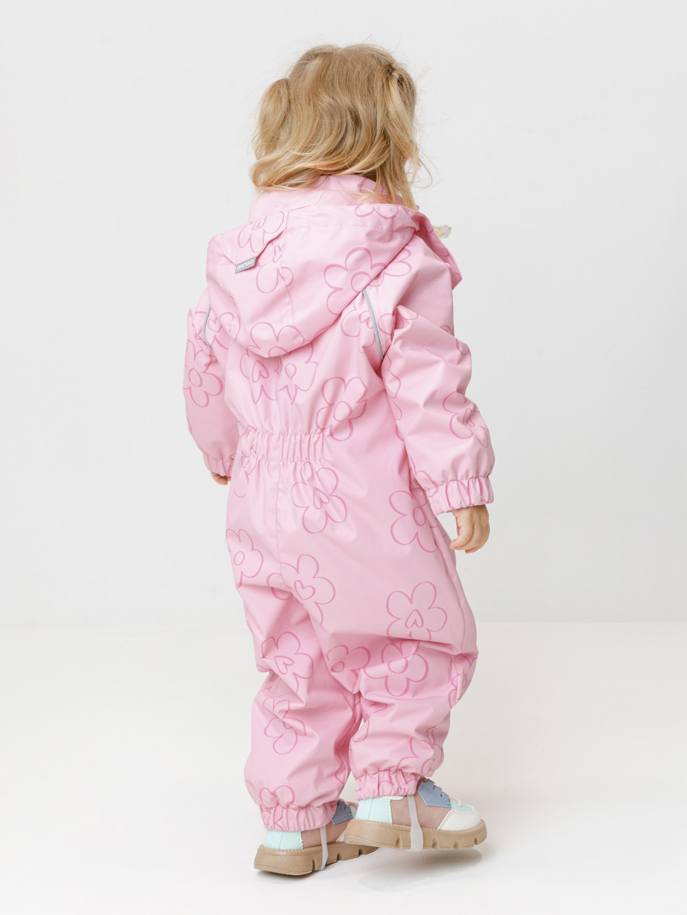 Ветровочный комбинезон ясельный без утеплителя. Выполнен из мембранной ткани с дополнительной тефлоновой обработкой. Данный вид обработки предохраняет изделие от загрязнения и лучше отводит влагу. Подклад из 100% хлопка. Для удобного одевания комбинезон застёгивается на удлинённую молнию с защитой подбородка. Утяжка на капюшоне с потайным стоппером. По низу рукавов и брючин, а также на спинке изделия предусмотрены эластичные резинки для лучшего прилегания. Для фиксации комбинезона используются съёмные силиконовые штрипки. В размерах 68-74 и 74-80 есть функциональные отвороты на рукавах и брючинах. Во всех изделиях верхнего ассортимента для безопасности ребёнка предусмотрены светоотражающие элементы.