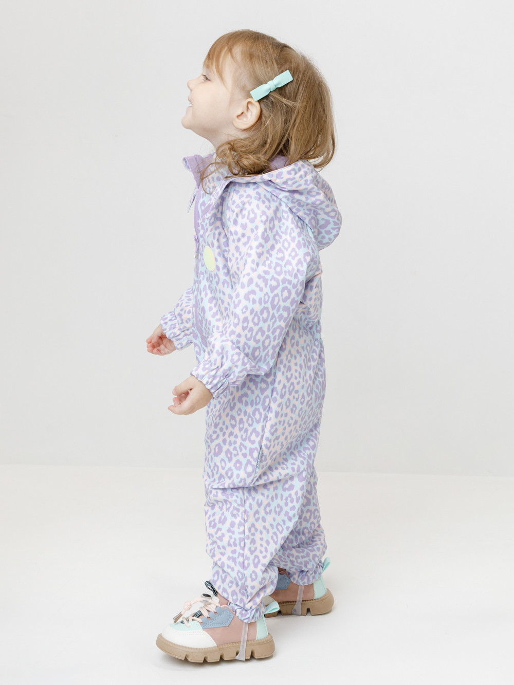 Ветровочный комбинезон ясельный без утеплителя. Выполнен из мембранной ткани с дополнительной тефлоновой обработкой. Данный вид обработки предохраняет изделие от загрязнения и лучше отводит влагу. Подклад из 100% хлопка. Для удобного одевания комбинезон застёгивается на удлинённую молнию с защитой подбородка. Утяжка на капюшоне с потайным стоппером. По низу рукавов и брючин, а также на спинке изделия предусмотрены эластичные резинки для лучшего прилегания. Для фиксации комбинезона используются съёмные силиконовые штрипки. В размерах 68-74 и 74-80 есть функциональные отвороты на рукавах и брючинах. Во всех изделиях верхнего ассортимента для безопасности ребёнка предусмотрены светоотражающие элементы.