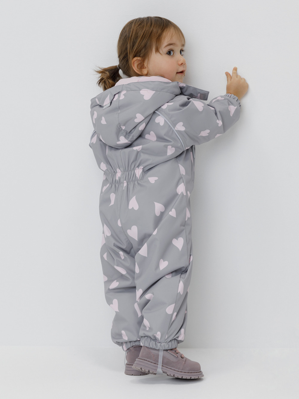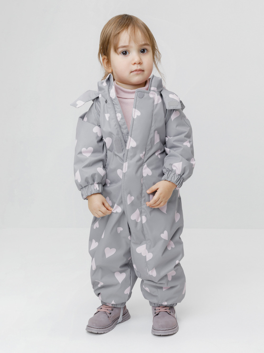 Демисезонный комбинезон ясельный с утеплителем Fellex®, 120 г/м2. Выполнен из мембранной ткани с дополнительной тефлоновой обработкой. Данный вид обработки предохраняет изделие от загрязнения и лучше отводит влагу. Подклад из 100% хлопка. Для удобного одевания комбинезон застёгивается на удлинённую молнию с защитой подбородка. Ветрозащитная планка фиксируется на липучках и кнопках. Утяжка на капюшоне с потайным стоппером. По низу рукавов и брючин, а также на спинке изделия предусмотрены эластичные резинки для лучшего прилегания. Для фиксации комбинезона используются съёмные силиконовые штрипки. В размерах 62-68, 68-74 и 74-80 есть функциональные отвороты на рукавах и брючинах. Во всех изделиях верхнего ассортимента для безопасности ребёнка предусмотрены светоотражающие элементы.
