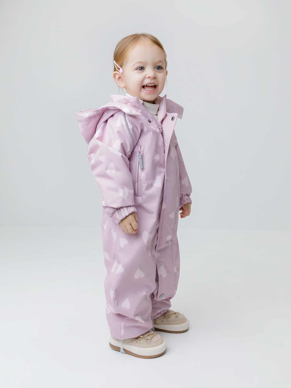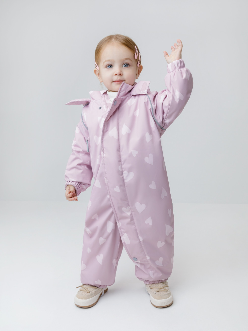 Демисезонный комбинезон ясельный с утеплителем Fellex®, 120 г/м2. Выполнен из мембранной ткани с дополнительной тефлоновой обработкой. Данный вид обработки предохраняет изделие от загрязнения и лучше отводит влагу. Подклад из 100% хлопка. Для удобного одевания комбинезон застёгивается на удлинённую молнию с защитой подбородка. Ветрозащитная планка фиксируется на липучках и кнопках. Утяжка на капюшоне с потайным стоппером. По низу рукавов и брючин, а также на спинке изделия предусмотрены эластичные резинки для лучшего прилегания. Для фиксации комбинезона используются съёмные силиконовые штрипки. В размерах 62-68, 68-74 и 74-80 есть функциональные отвороты на рукавах и брючинах. Во всех изделиях верхнего ассортимента для безопасности ребёнка предусмотрены светоотражающие элементы.