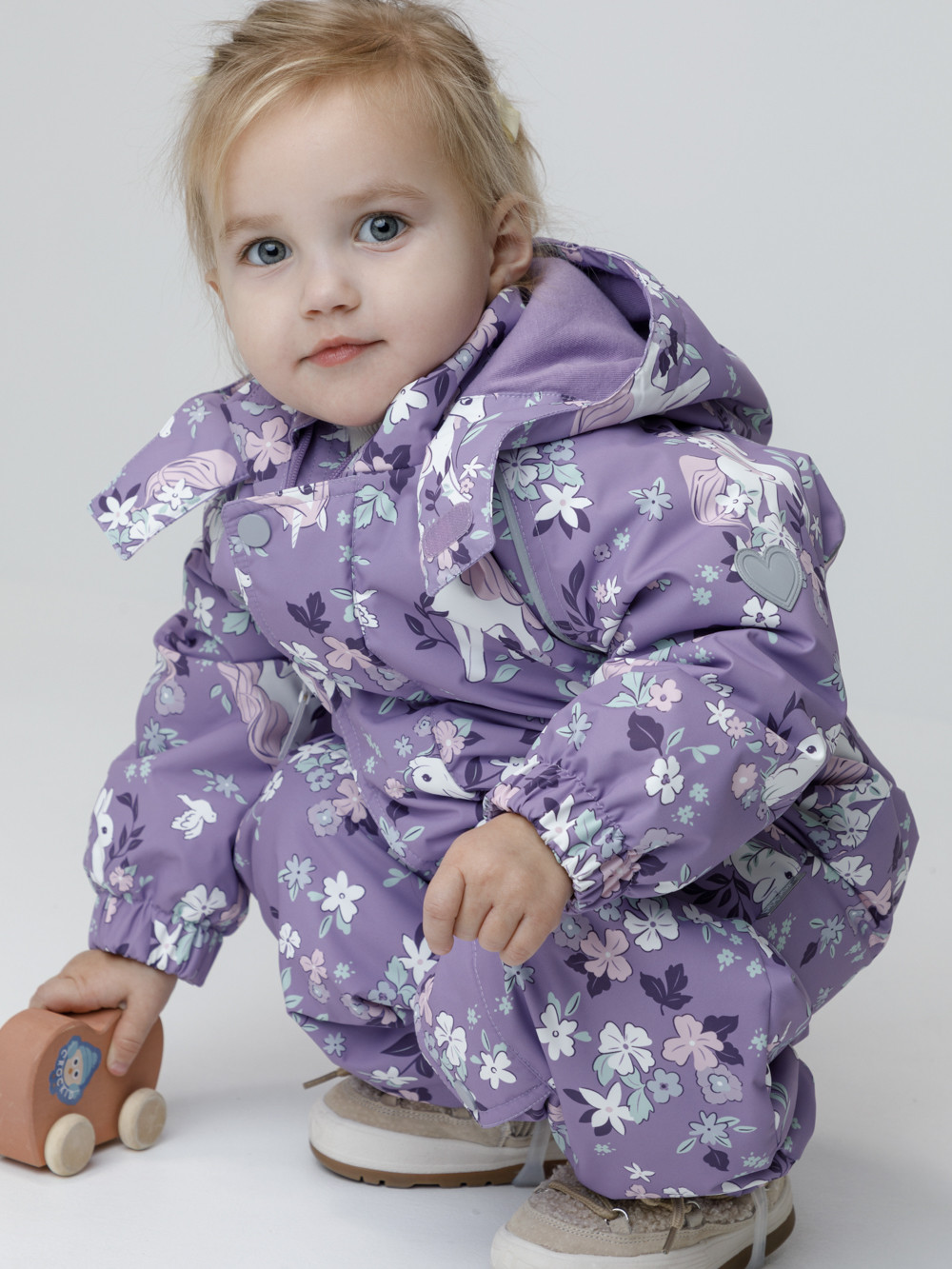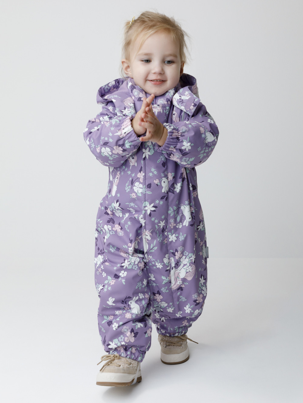 Демисезонный комбинезон ясельный с утеплителем Fellex®, 120 г/м2. Выполнен из мембранной ткани с дополнительной тефлоновой обработкой. Данный вид обработки предохраняет изделие от загрязнения и лучше отводит влагу. Подклад из 100% хлопка. Для удобного одевания комбинезон застёгивается на удлинённую молнию с защитой подбородка. Ветрозащитная планка фиксируется на липучках и кнопках. Утяжка на капюшоне с потайным стоппером. По низу рукавов и брючин, а также на спинке изделия предусмотрены эластичные резинки для лучшего прилегания. Для фиксации комбинезона используются съёмные силиконовые штрипки. В размере 74-80 есть функциональные отвороты на рукавах и брючинах. Во всех изделиях верхнего ассортимента для безопасности ребёнка предусмотрены светоотражающие элементы.