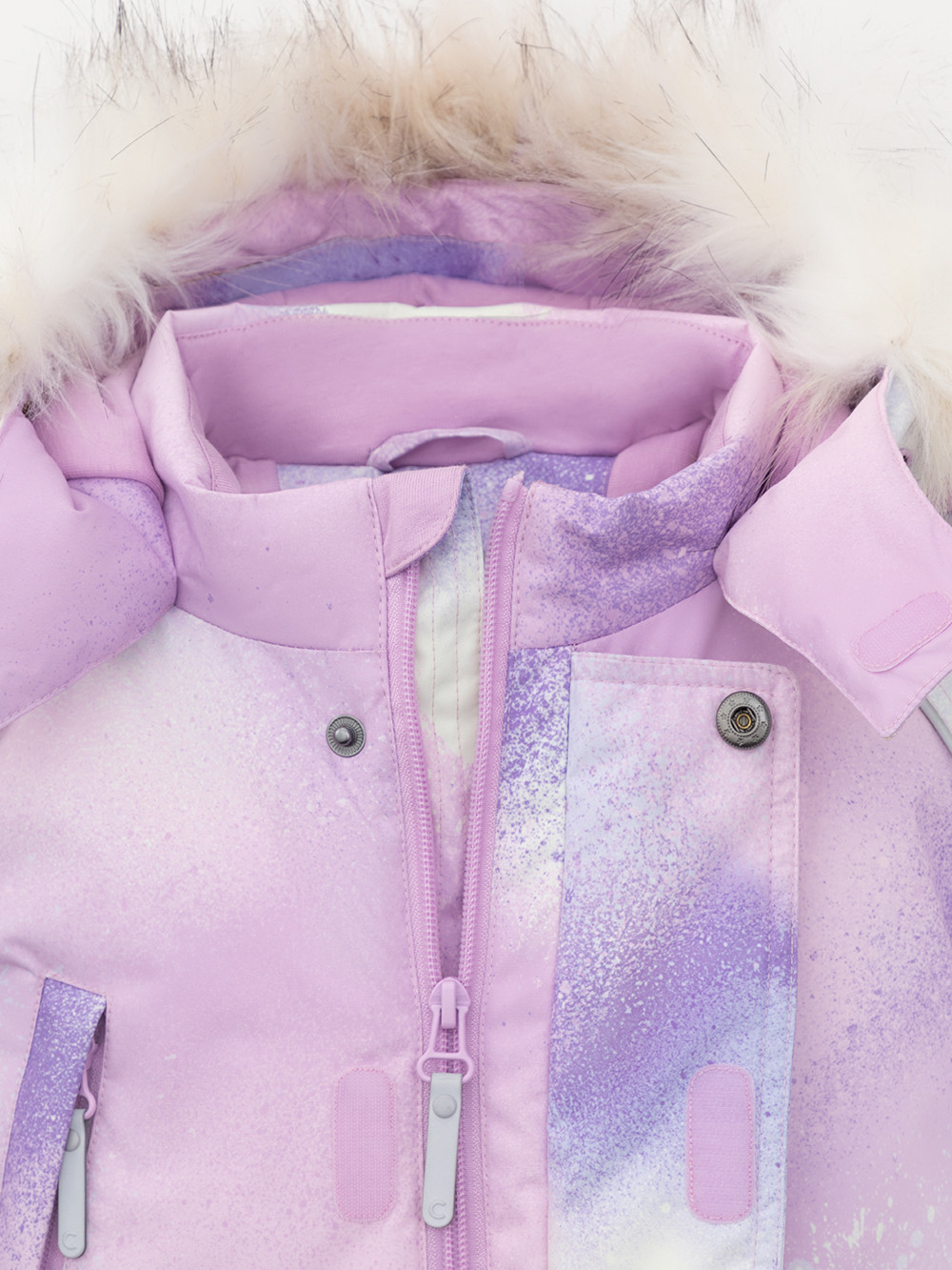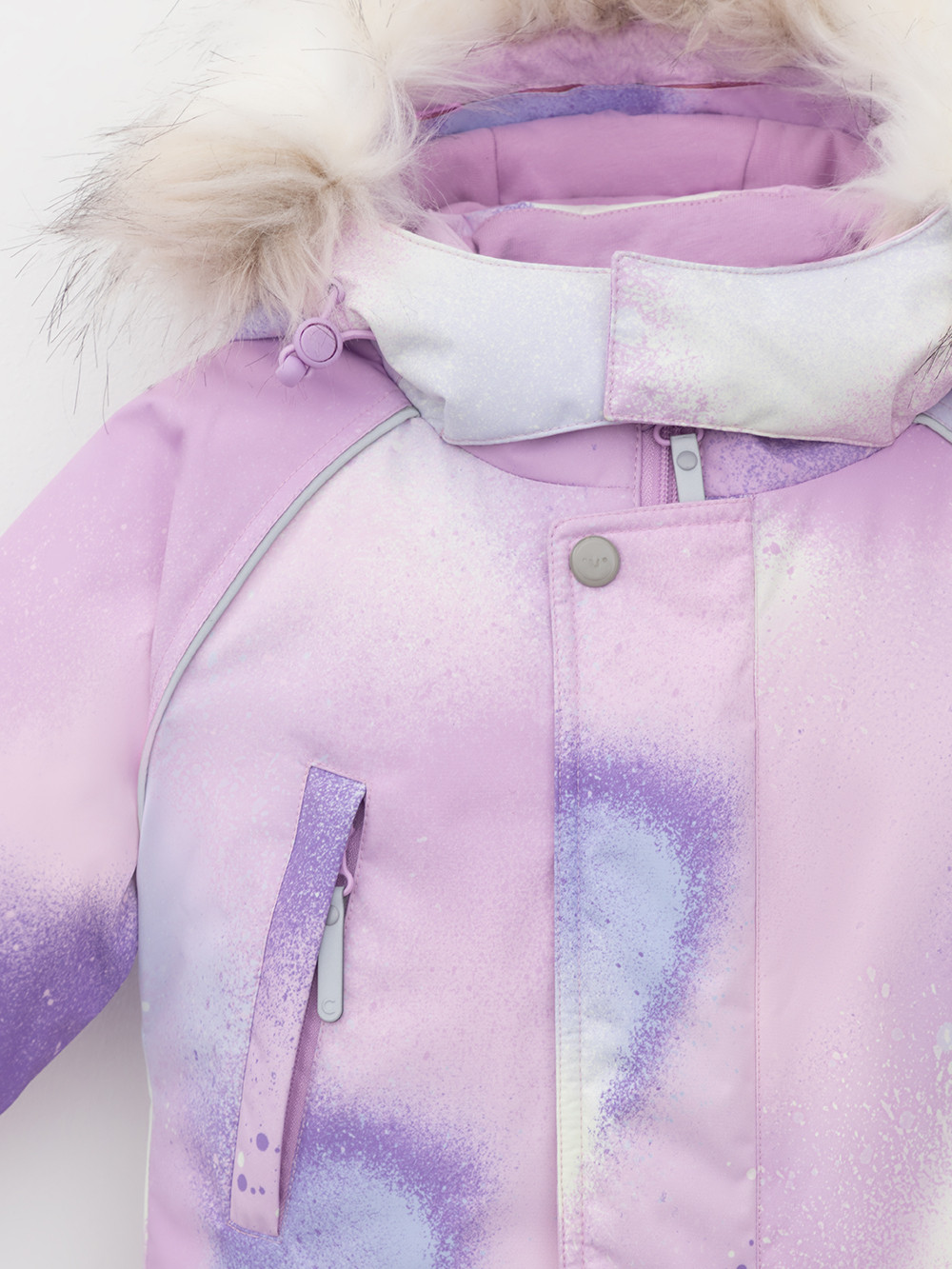 Зимний комбинезон ясельный с утеплителем Fellex®: 300 г/м2. Выполнен из мембранной ткани с дополнительной тефлоновой обработкой, которая предохраняет изделие от загрязнений и отталкивает влагу. Подклад выполнен из 100% хлопка. Комбинезон застёгивается на молнию и внешнюю планку на липучках, предусмотрена защита подбородка. Несъёмный капюшон имеет эластичную утяжку со стопперами и отстёгивающийся искусственный мех. Резинка по спинке для лучшего прилегания. На груди карман на молнии. По рукавам и низу изделия эластичные манжеты, на ножках отстёгивающиеся силиконовые штрипки. До размера 80-86 включительно в комплекте идут рукавицы и пинетки. Во всех изделиях верхнего ассортимента для безопасности ребёнка предусмотрены светоотражающие элементы.