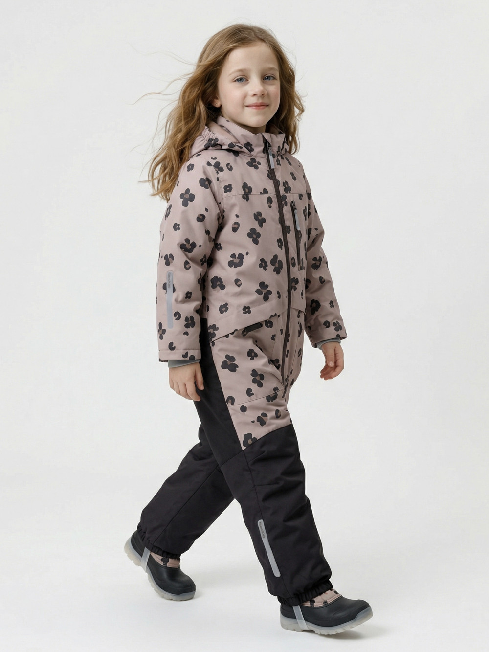 Демисезонный комбинезон для девочки с утеплителем SEE®, 120 г/м2. Выполнен из мембранной ткани с дополнительной тефлоновой обработкой. Данный вид обработки предохраняет изделие от загрязнения и лучше отводит влагу. Подклад из 100% полиэстера. Для удобного одевания комбинезон застёгивается на удлинённую молнию с защитой подбородка. Капюшон не снимается, по бокам эластичная утяжка со стопперами. Внутри рукавов мягкие манжеты из лайкры. По низу и по спинке изделия предусмотрены эластичные резинки для лучшего прилегания. Для фиксации комбинезона используются съёмные силиконовые штрипки. Модель оснащена системой роста: рукава и штанины можно аккуратно распороть по специальному шву, увеличивая длину на 5 см и позволяя комбинезону «расти» вместе с ребёнком. Во всех изделиях верхнего ассортимента для безопасности ребёнка предусмотрены светоотражающие элементы.