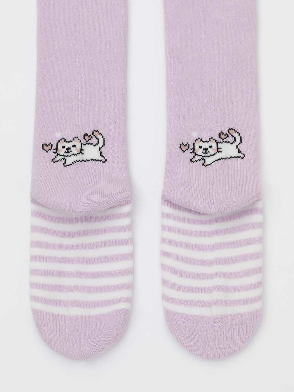 Колготки тёплые из махры для девочки с эластичной резинкой в поясе и формованной стопой. Украшены рисунком. Изделие сохраняет форму и стойкий цвет после многочисленных стирок.