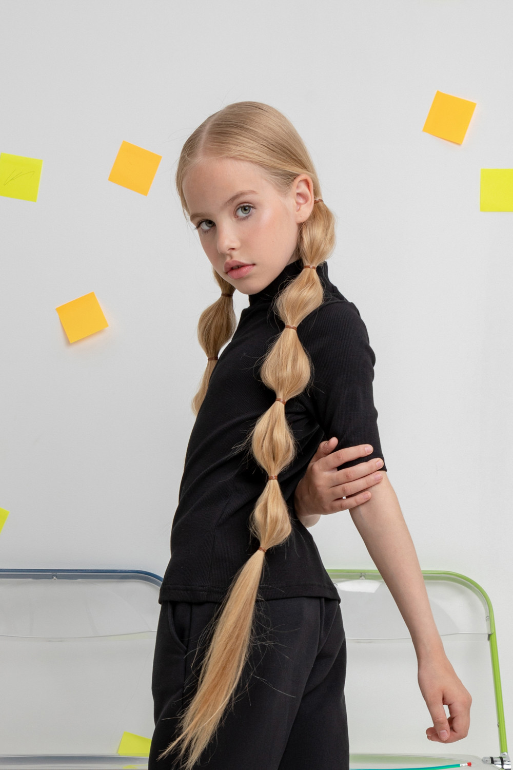Водолазка для девочки с коротким рукавом и воротником-стойкой в рубчик. Мягкий материал изделия приятен к телу и хорошо тянется. Все трикотажные изделия производятся в соответствии с нормами швейцарского сертификата ЭкоТекс.