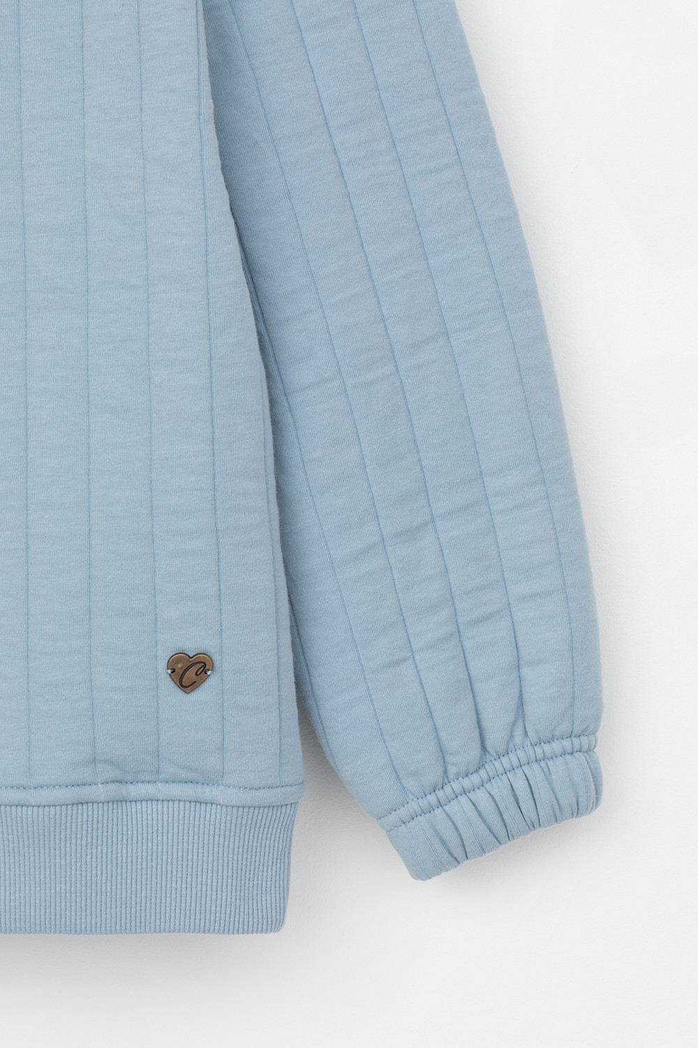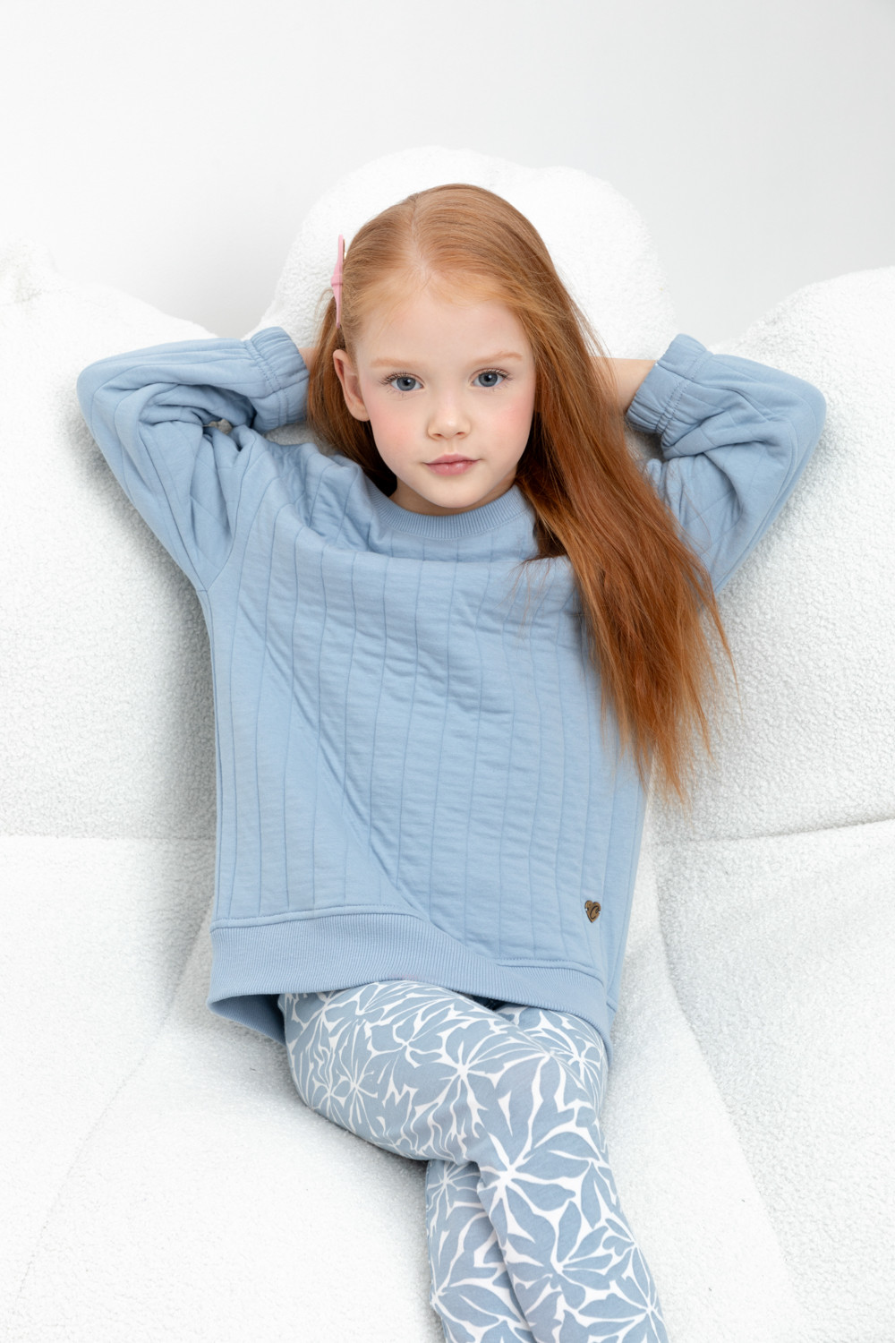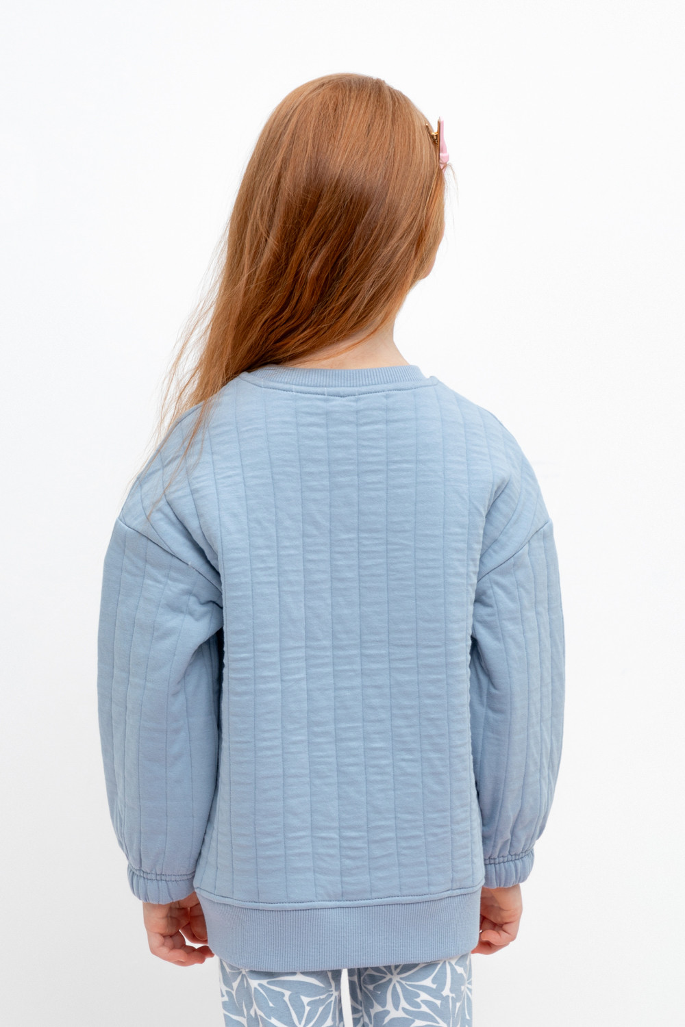 Свитшот для девочки из высококачественного капитония. Обтачка горловины и пояс выполнены из эластичного полотна.