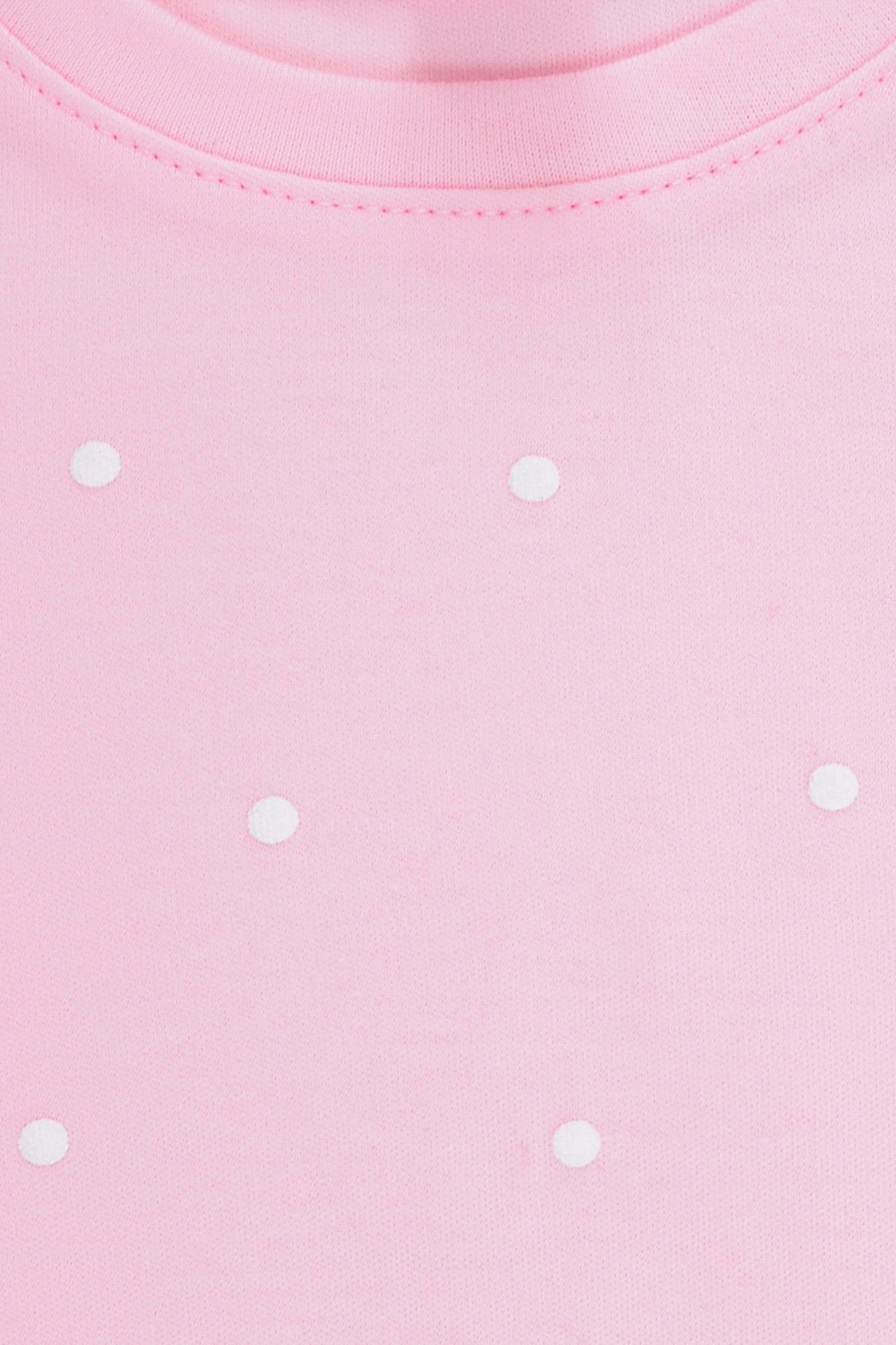 Лёгкий джемпер с длинными втачными рукавами. Сшит из однотонного трикотажа интерлок и украшен принтом. Рукава и низ изделия обработаны плоскими швами. Спереди жаккардовая нашивка.