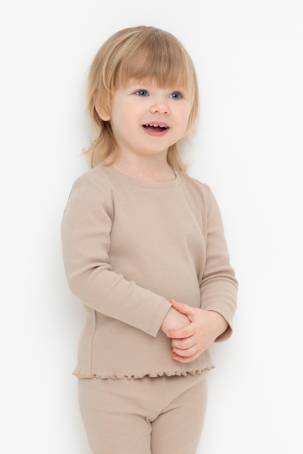 Лонгслив для девочки из высококачественного трикотажного полотна в рубчик.