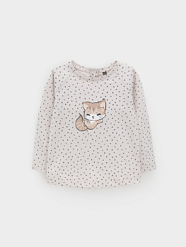 Лонгслив для девочки из гладкого трикотажа, произведённого из высококачественного натурального хлопка. Застёгивается на спинке на планку с кнопками. Оригинальный принт выполнен из стойких текстильных гипоаллергенных красителей. Изделие сохраняет цвет и форму после многократных стирок. Все трикотажные полотна производятся в соответствии с нормами швейцарского сертификата ЭкоТекс.