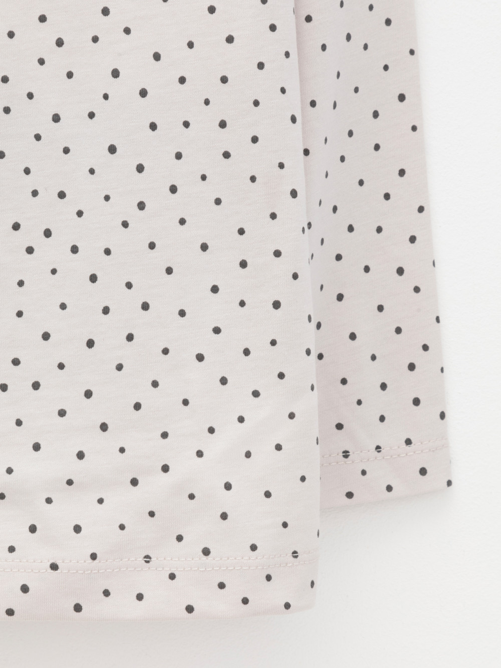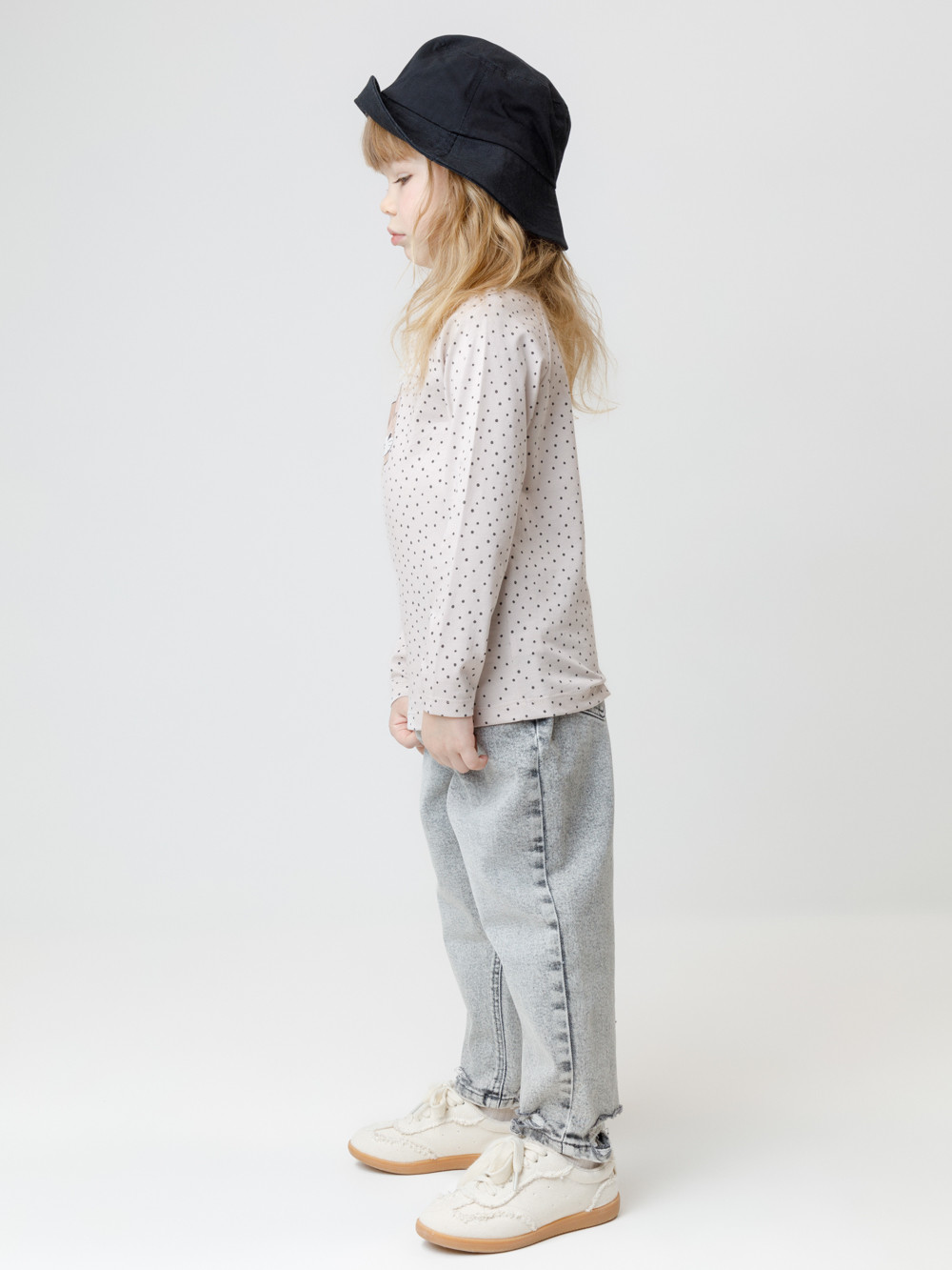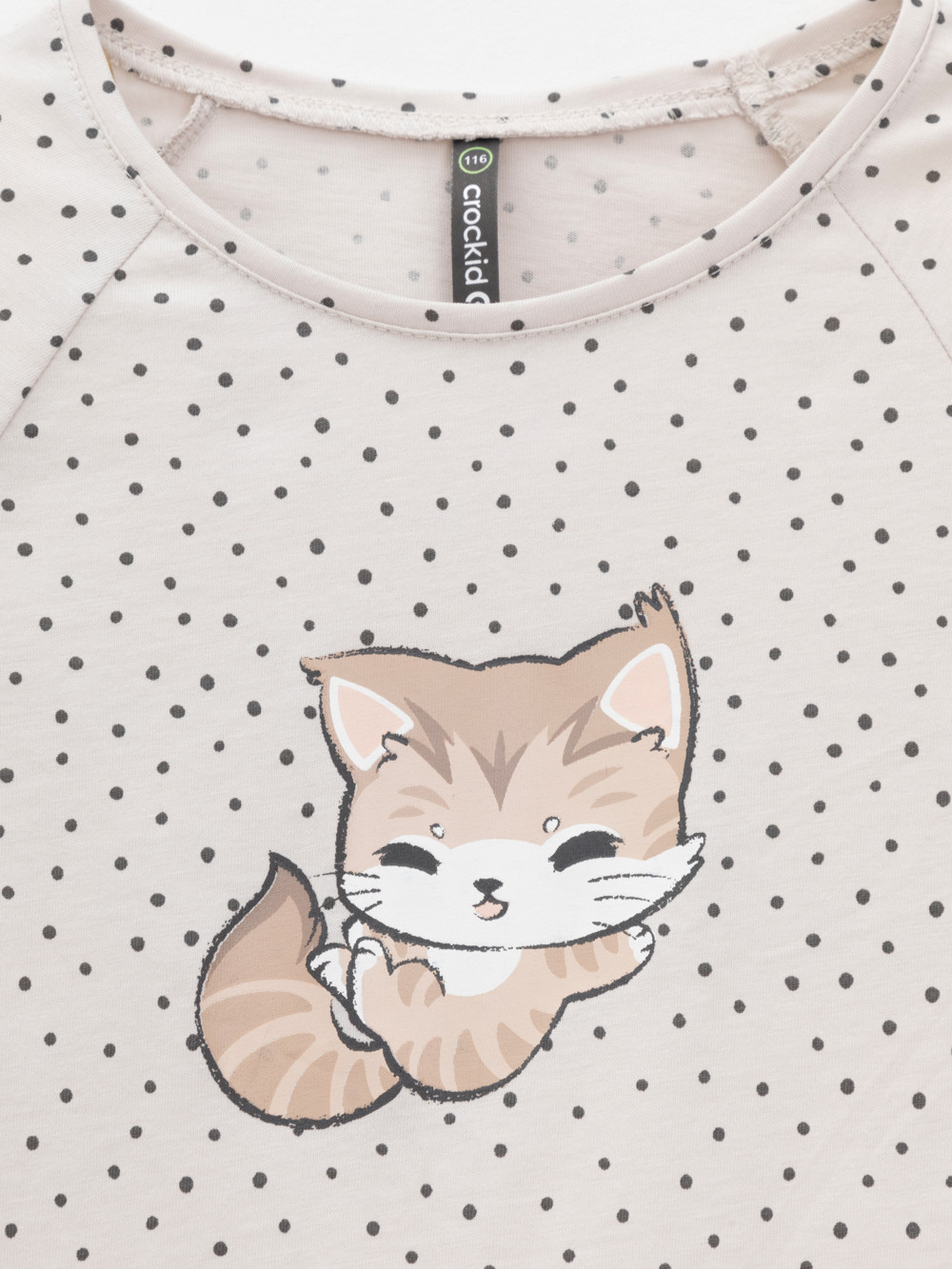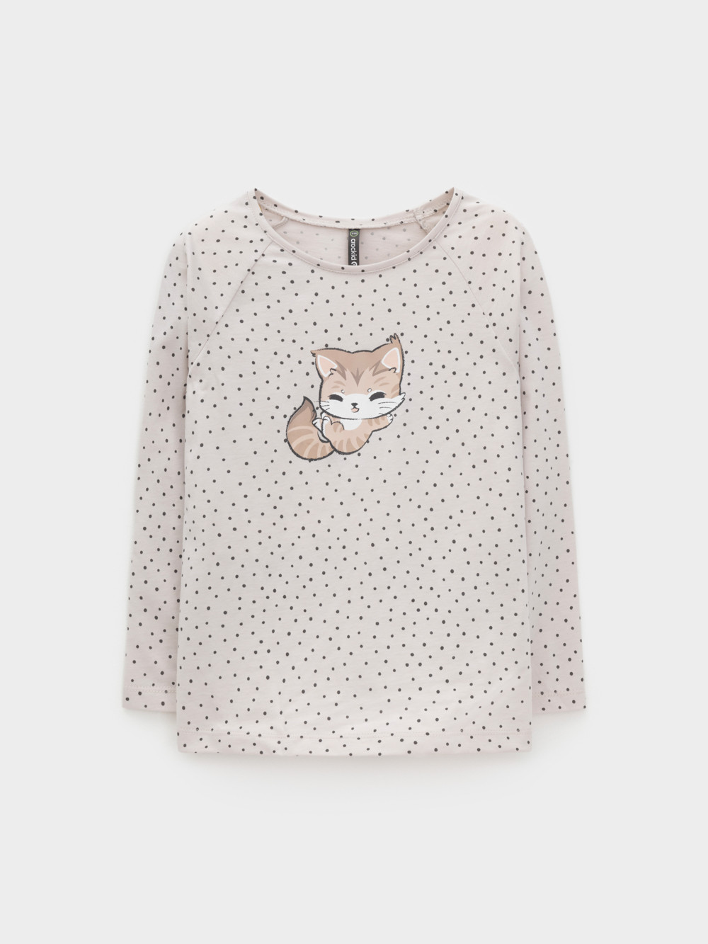 Лонгслив для девочки из гладкого трикотажа, произведённого из высококачественного натурального хлопка. Застёгивается на спинке на планку с кнопками в размерах 92 и 98. Оригинальный принт выполнен из стойких текстильных гипоаллергенных красителей. Изделие сохраняет цвет и форму после многократных стирок. Все трикотажные полотна производятся в соответствии с нормами швейцарского сертификата ЭкоТекс.