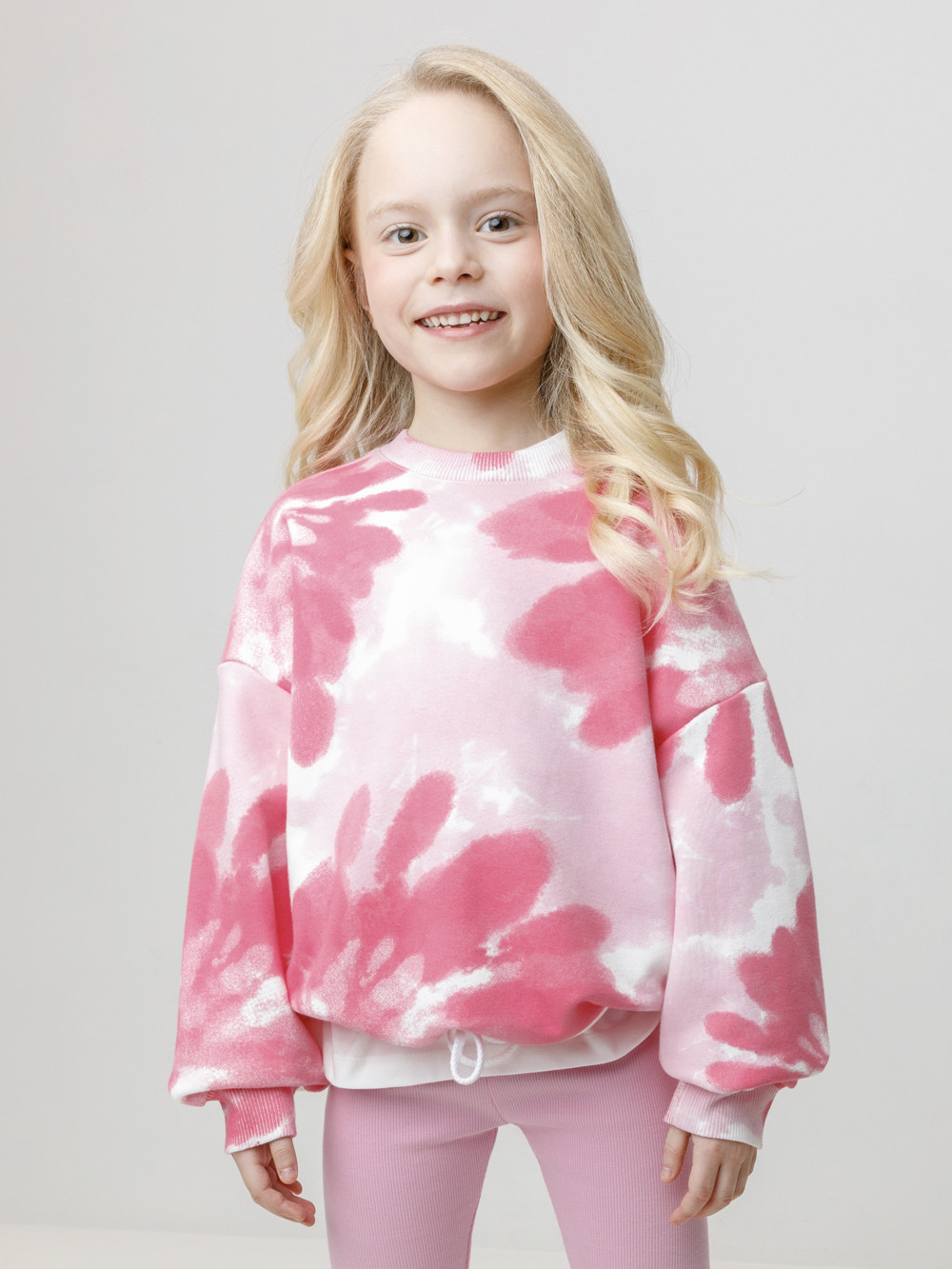 Свитшот для девочки из высококачественного трикотажного полотна. В составе 80% натурального хлопка и 20% полиэстера, при этом полиэстер ввязан внутрь по особой технологии и не соприкасается с кожей. На рукавах мягкие манжеты. Пояс регулируется по ширине при помощи шнурка. Оригинальная набивка выполнена из стойких текстильных гипоаллергенных красителей. Изделие сохраняет цвет и форму после многократных стирок. Все трикотажные полотна производятся в соответствии с нормами швейцарского сертификата ЭкоТекс.