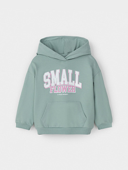 Толстовка с капюшоном для девочки из мягкого петельчатого футера. На рукавах и по низу изделия эластичные манжеты и пояс. Спереди удобный карман-кенгуру. Принт выполнен из стойких текстильных гипоаллергенных красителей.