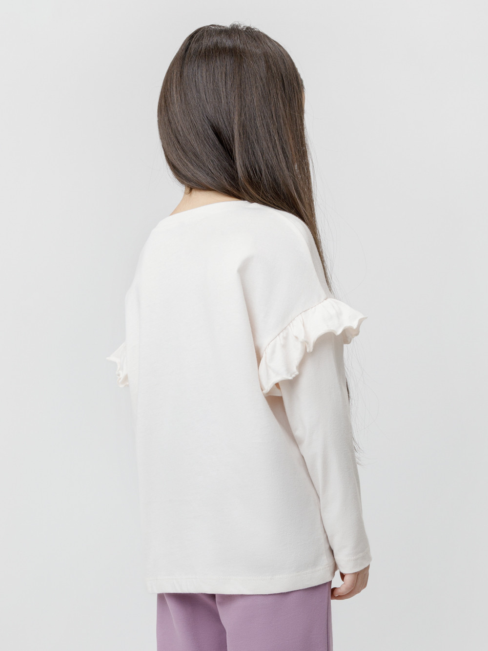 Лонгслив для девочки с нарядными рюшами из высококачественного трикотажного полотна, изготовленного из натурального хлопка. Изделие сохраняет цвет и форму после многократных стирок. Все трикотажные полотна производятся в соответствии с нормами швейцарского сертификата ЭкоТекс.