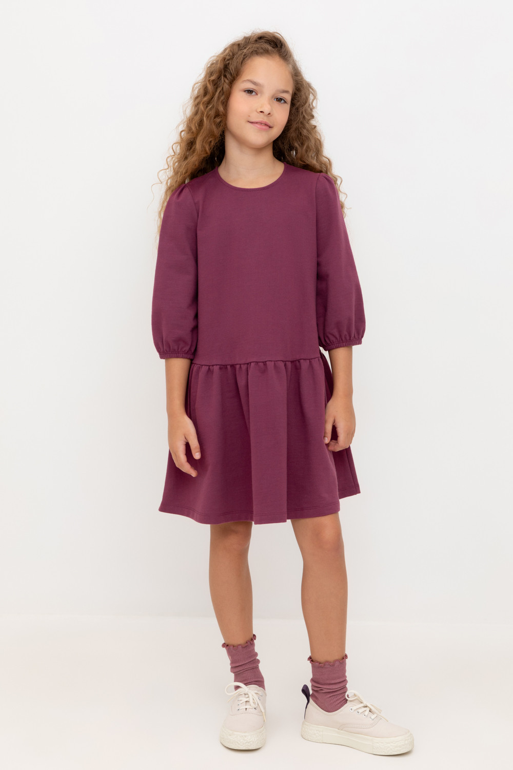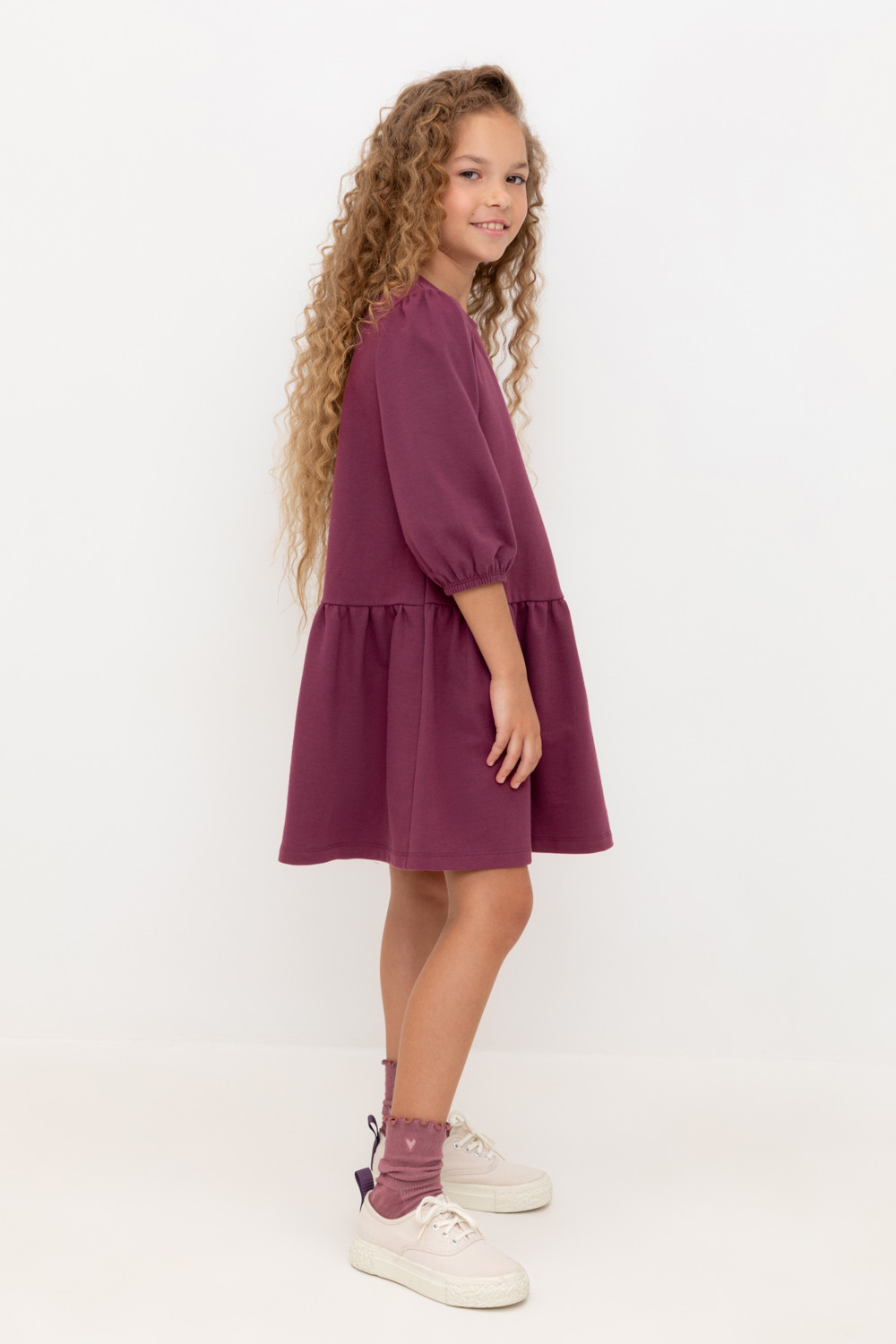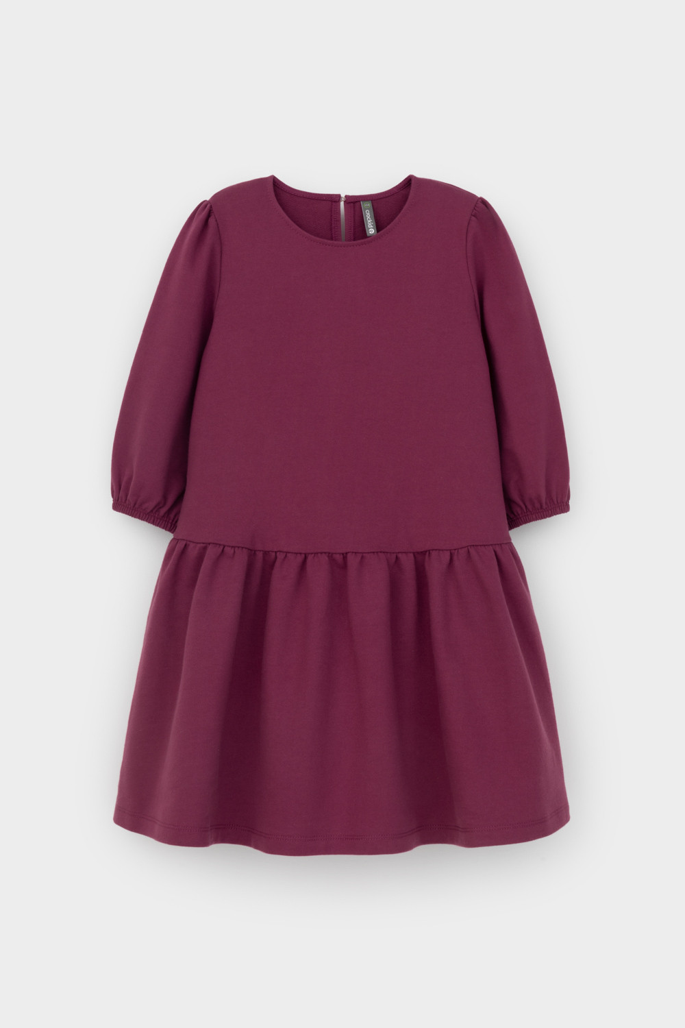 Платье для девочки с объемными рукавами из высококачественного петельчатого футера.