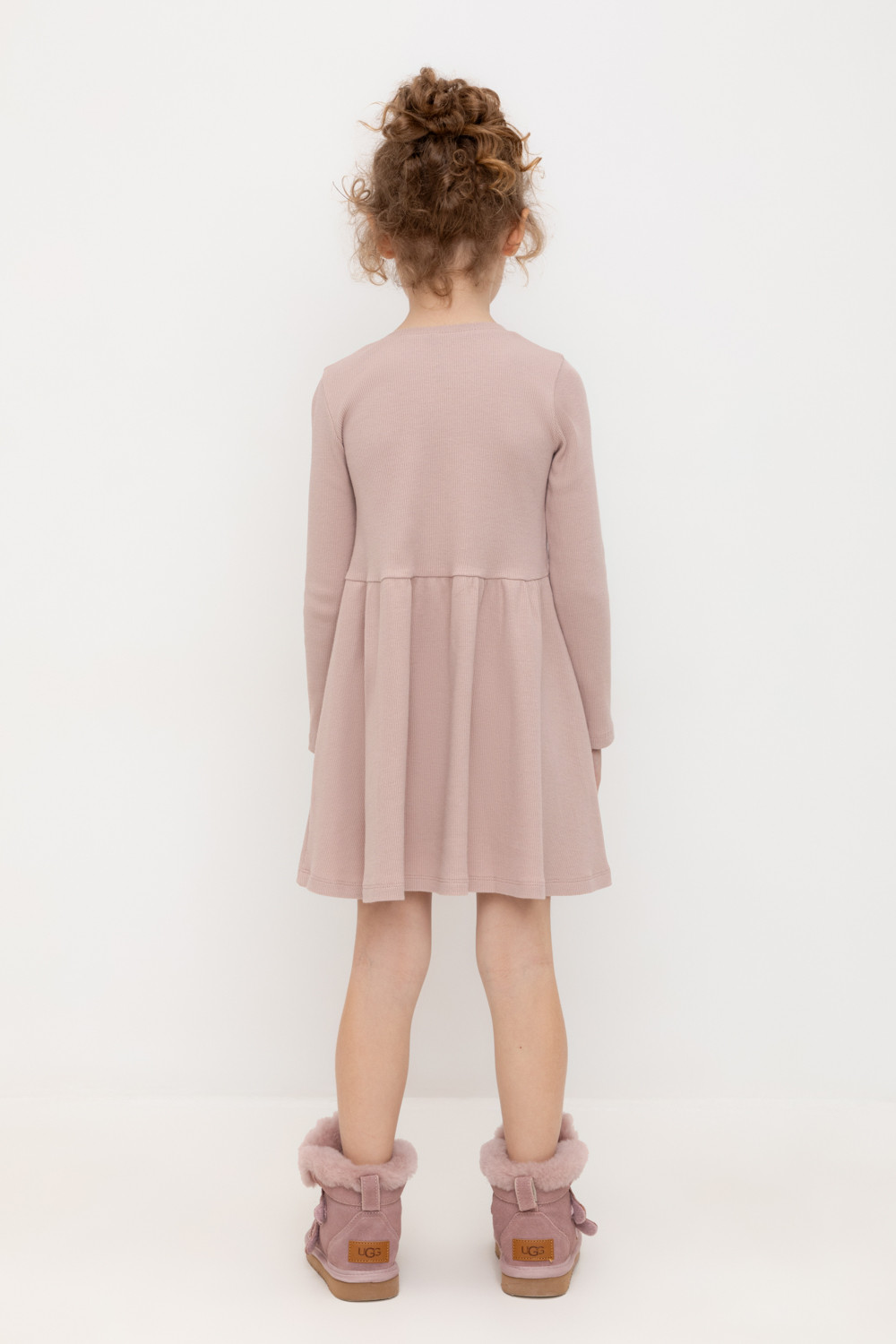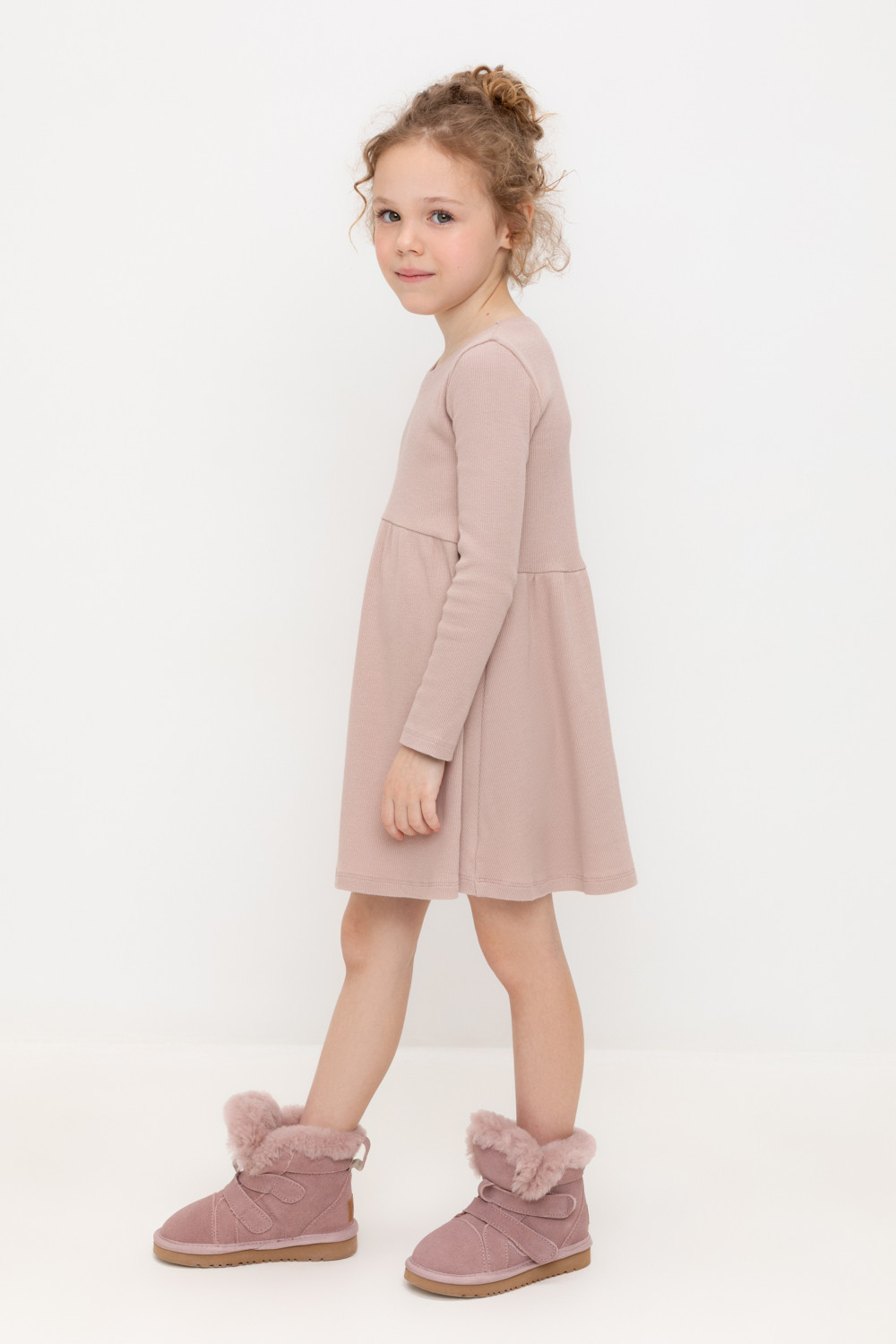 Платье для девочки из эластичного трикотажа в рубчик.