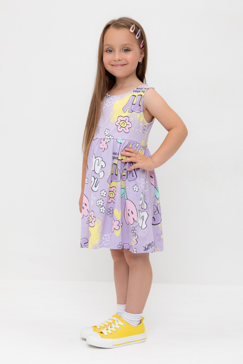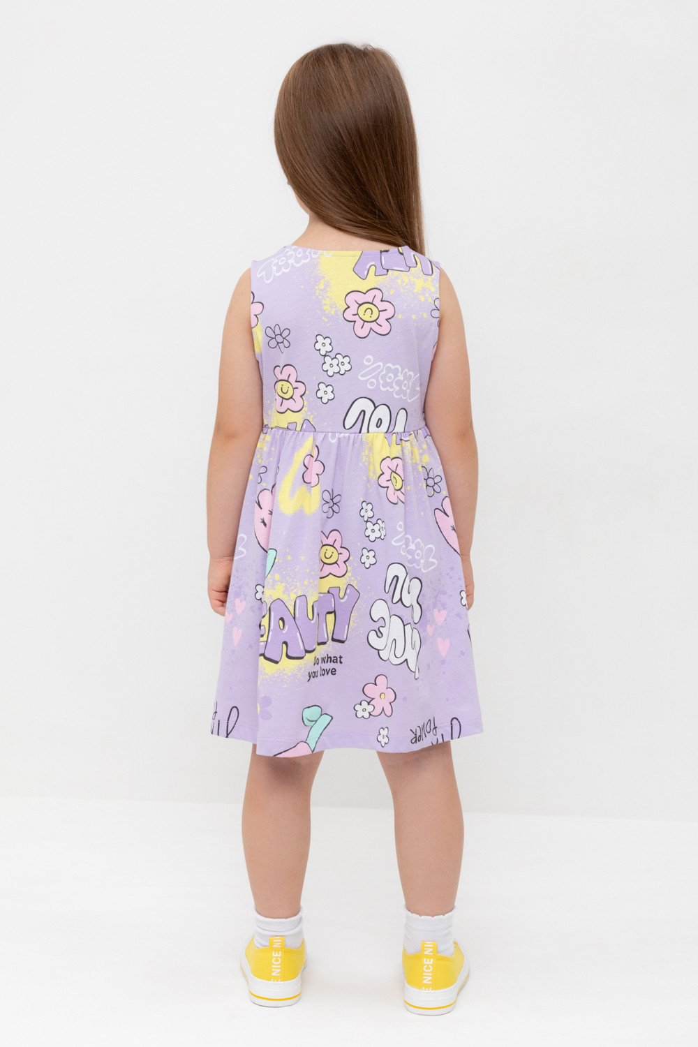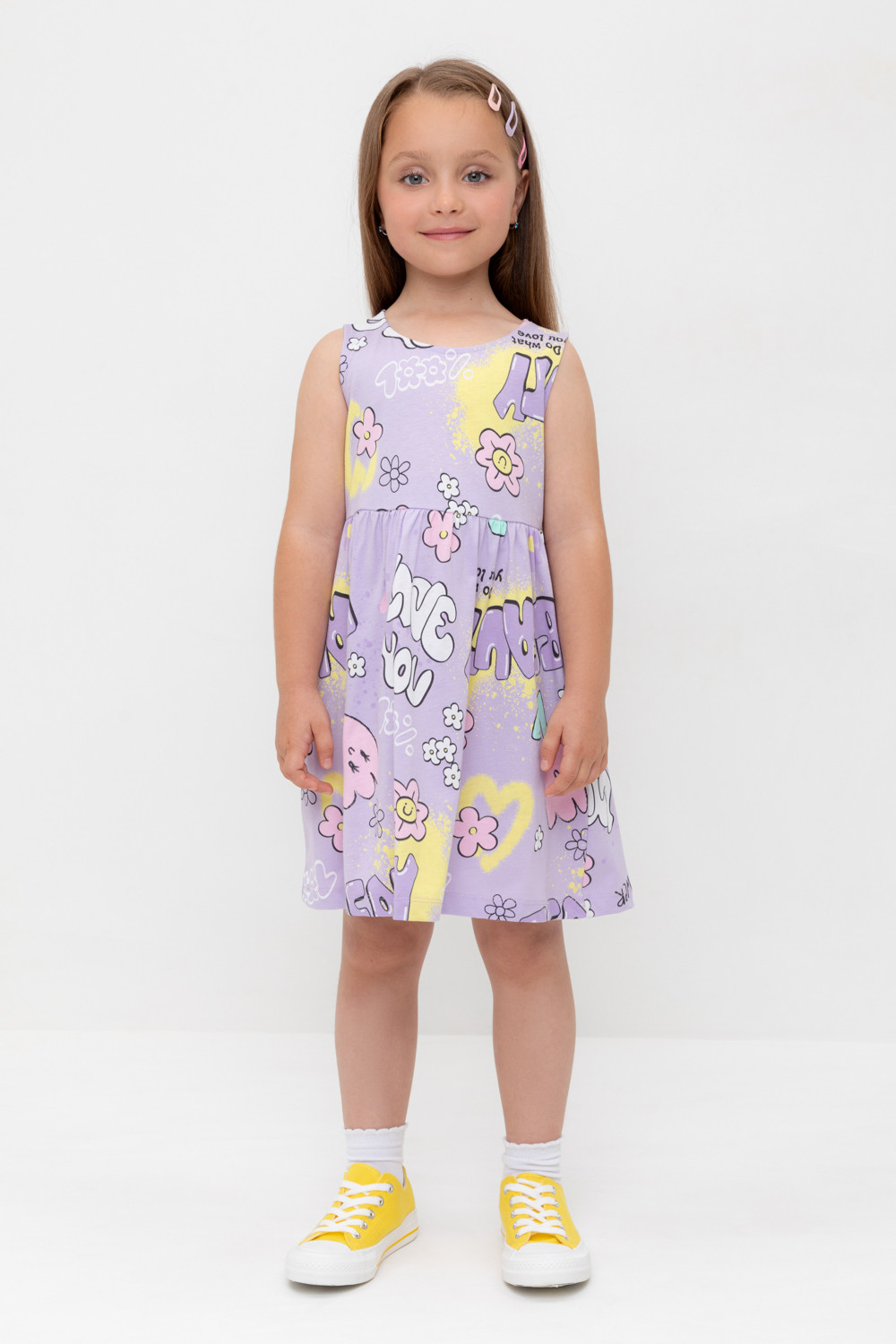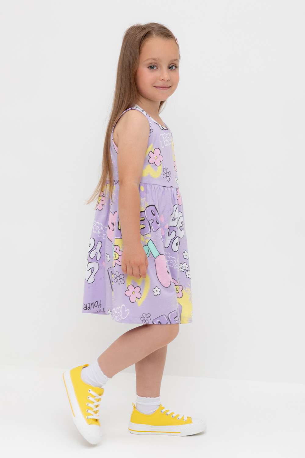 Легкое трикотажное платье для девочки из высококачественного хлопка. Оригинальная набивка выполнена из стойких текстильных гипоаллергенных красителей. Изделие сохраняет цвет и форму после многократных стирок.