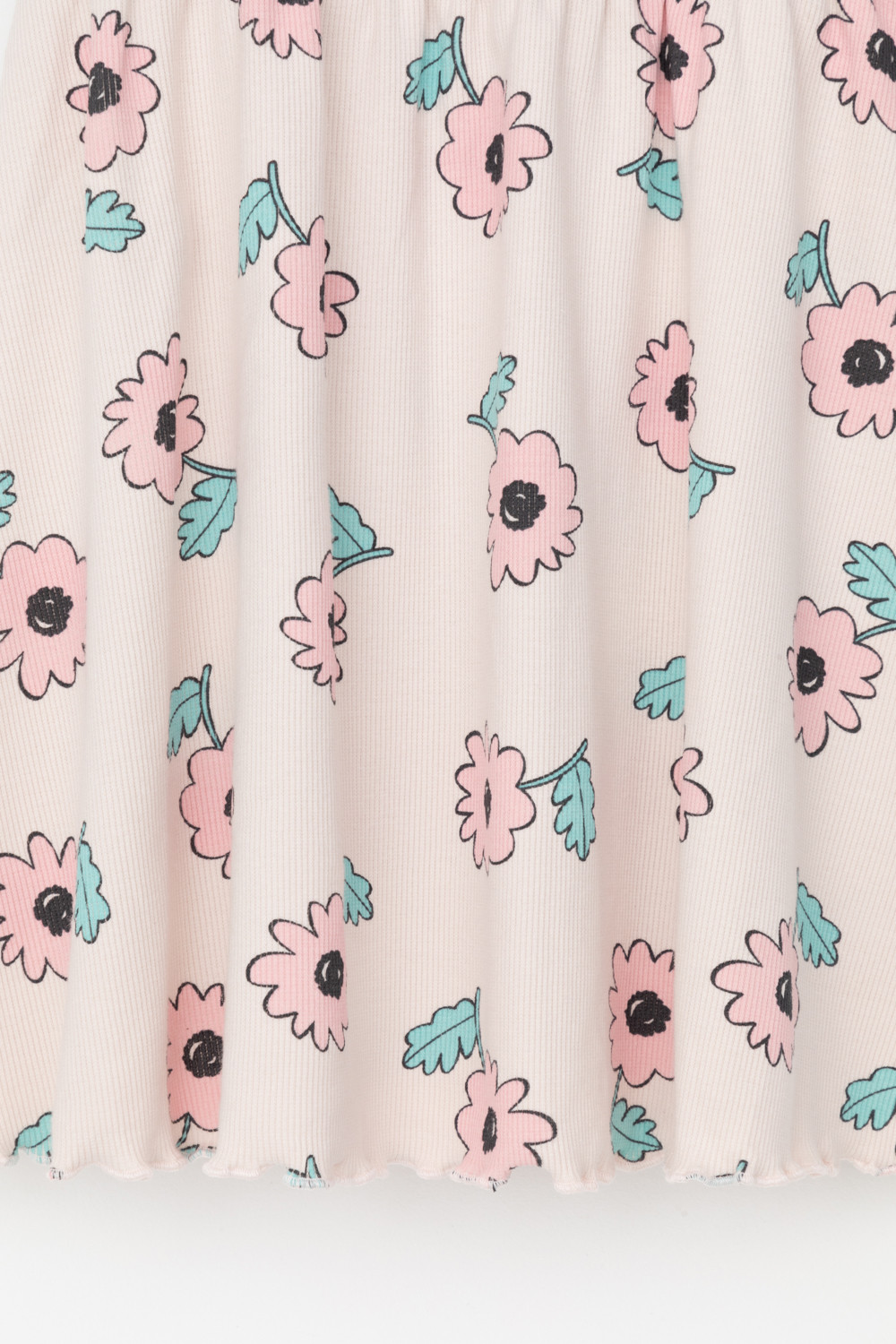 Летнее платье для девочки из эластичного трикотажа в рубчик. Оригинальная набивка выполнена из стойких текстильных гипоаллергенных красителей.