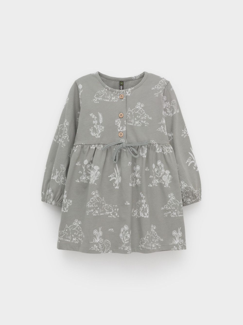 Платье для девочки с длинными рукавами из гладкого хлопкового трикотажа. Для удобства одевания спереди застёгивается на пуговицы. Платье сохраняет форму и стойкий цвет после многочисленных стирок и идеально подходит на каждый день. Все трикотажные полотна производятся в соответствии с нормами швейцарского сертификата ЭкоТекс.