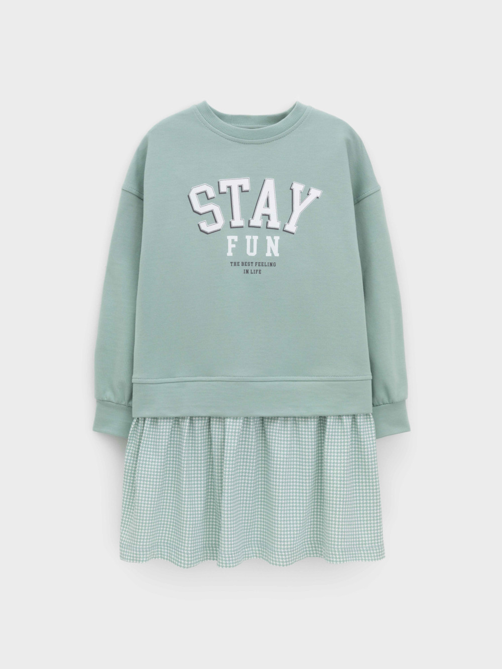 Платье для девочки с длинными рукавами. Изготовлено из мягкого петельчатого трикотажа и украшено оборкой из гладкого материала супрем. Для удобства одевания на спинке застёгивается на кнопки в размерах 92 и 98. Платье сохраняет форму и стойкий цвет после многочисленных стирок и идеально подходит на каждый день. Оригинальный принт выполнен из стойких текстильных гипоаллергенных красителей. Все трикотажные полотна производятся в соответствии с нормами швейцарского сертификата ЭкоТекс.