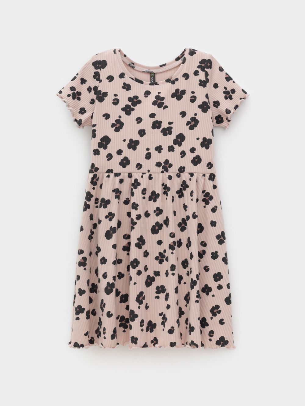 Платье для девочки из эластичного трикотажа в рубчик. Оригинальный рисунок выполнен из стойких текстильных гипоаллергенных красителей. Изделие сохраняет цвет и форму после многократных стирок. Все трикотажные полотна производятся в соответствии с нормами швейцарского сертификата ЭкоТекс.