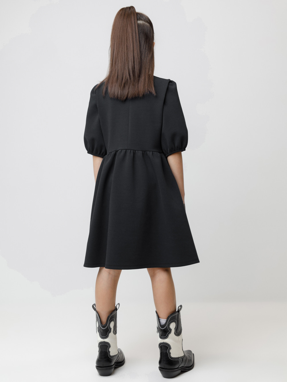 Платье школьное с короткими рукавами для девочки. Изготовлено из высококачественного трикотажа интерлок DOUBLE FACE. Застёгивается на пуговицу на спинке. Низ рукавов собран на резинку. Идеальный и комфортный вариант на каждый день.