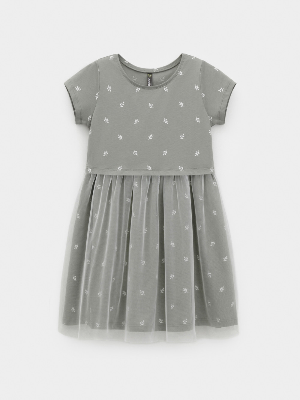 Нарядное платье для девочки с воздушным верхним слоем из сетки. Изготовлено из высококачественного гладкого трикотажа, произведённого из натурального хлопка. Застёгивается на кнопки в размерах 92 и 98. Оригинальный рисунок выполнен из стойких текстильных гипоаллергенных красителей. Изделие сохраняет цвет и форму после многократных стирок. Все трикотажные полотна производятся в соответствии с нормами швейцарского сертификата ЭкоТекс.