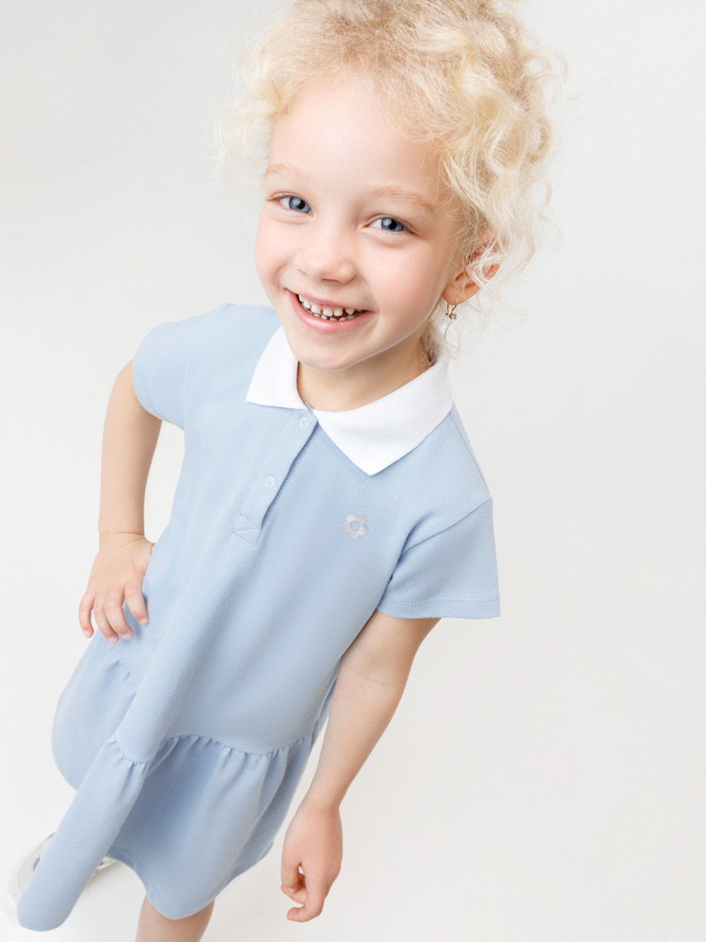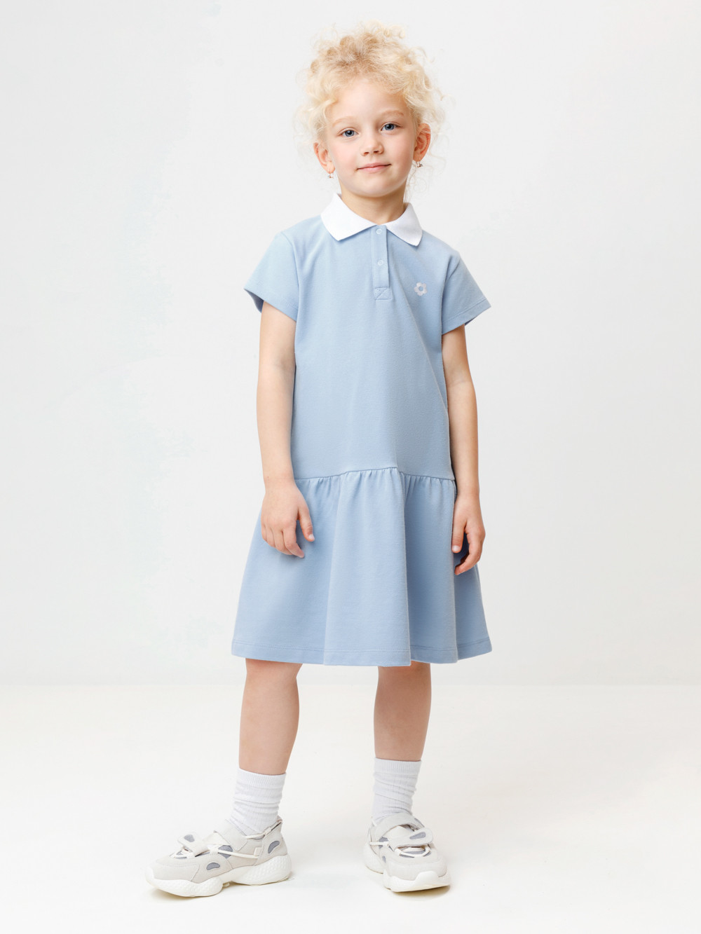 Платье-поло с воротничком и с короткими рукавами для девочки. Изготовлено из высококачественного трикотажа пике. Застёгивается на кнопки спереди. Платье сохраняет форму и стойкий цвет после многочисленных стирок и идеально подходит на каждый день. Все трикотажные полотна производятся в соответствии с нормами швейцарского сертификата ЭкоТекс.