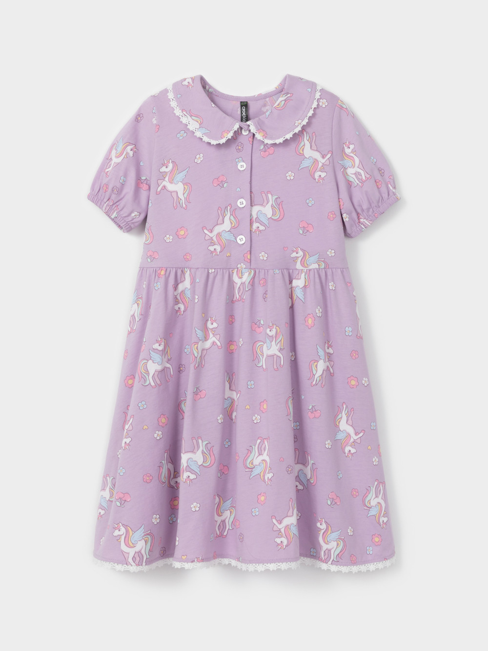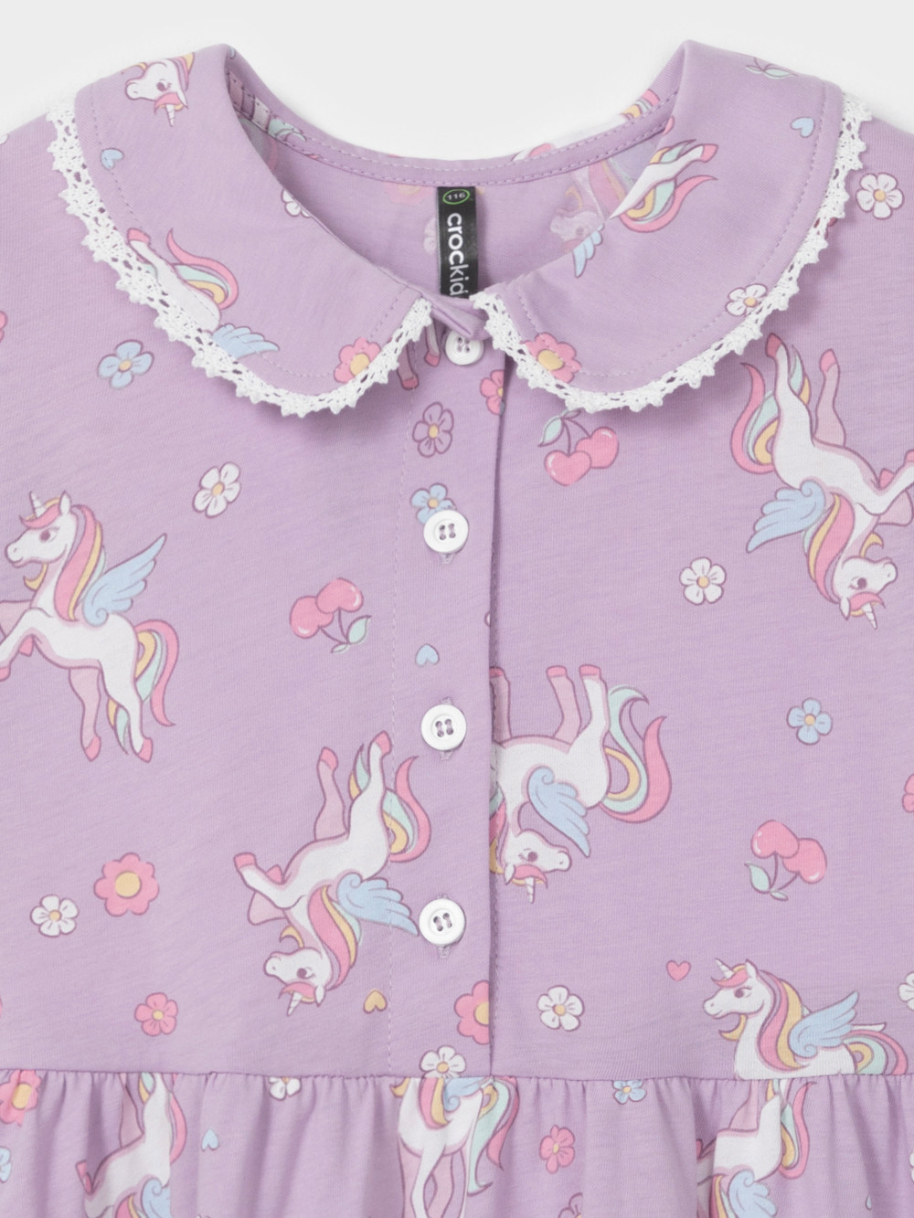 Платье с кружевом для девочки из высококачественного трикотажа, изготовленного из натурального хлопка. Застёгивается на пуговицы спереди. Платье сохраняет форму и стойкий цвет после многочисленных стирок и идеально подходит на каждый день. Все трикотажные полотна производятся в соответствии с нормами швейцарского сертификата ЭкоТекс.