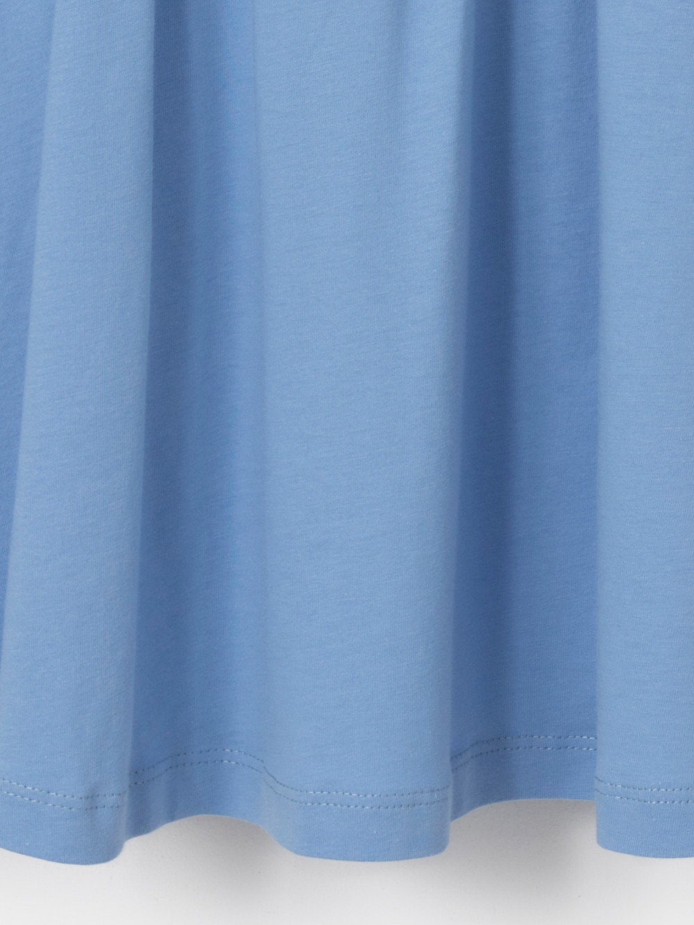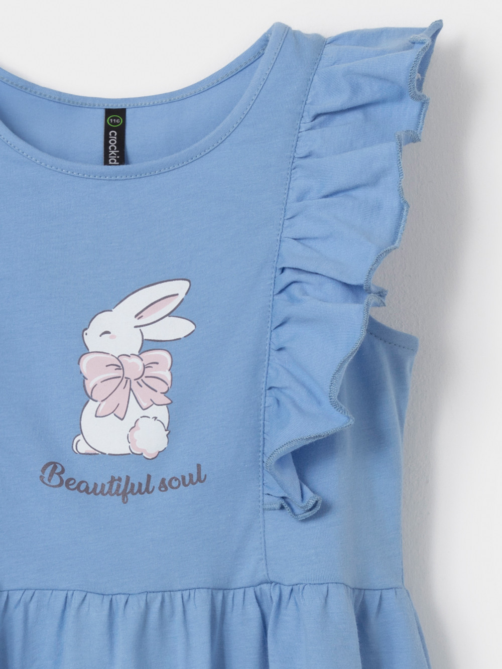 Лёгкое платье с оборками для девочки. Изготовлено из гладкого трикотажа супрем, который произведён из 100% натурального хлопка высокого качества. Изделие отлично дышит, поэтому идеально подходит на каждый день. Оригинальный принт выполнен из стойких текстильных гипоаллергенных красителей. Платье сохраняет форму и стойкий цвет после многочисленных стирок. Все трикотажные полотна производятся в соответствии с нормами швейцарского сертификата ЭкоТекс.