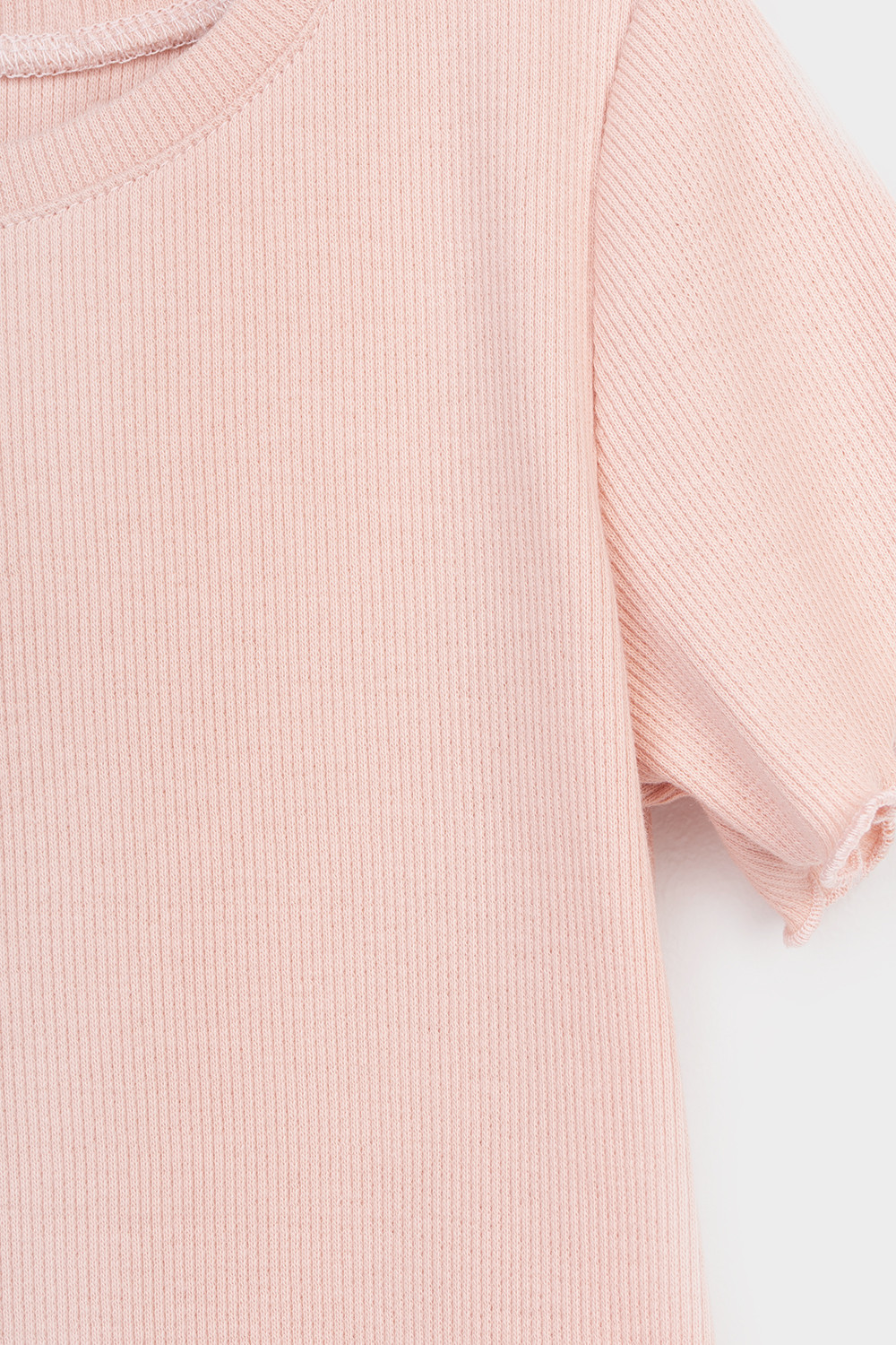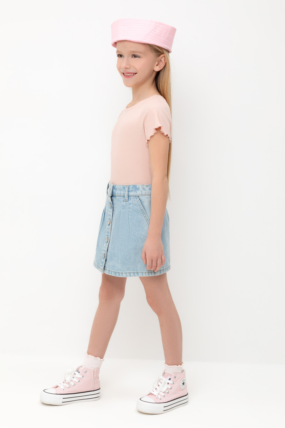 Футболка для девочки из эластичного трикотажа в рубчик. Изделие сохраняет цвет и форму после многократных стирок.