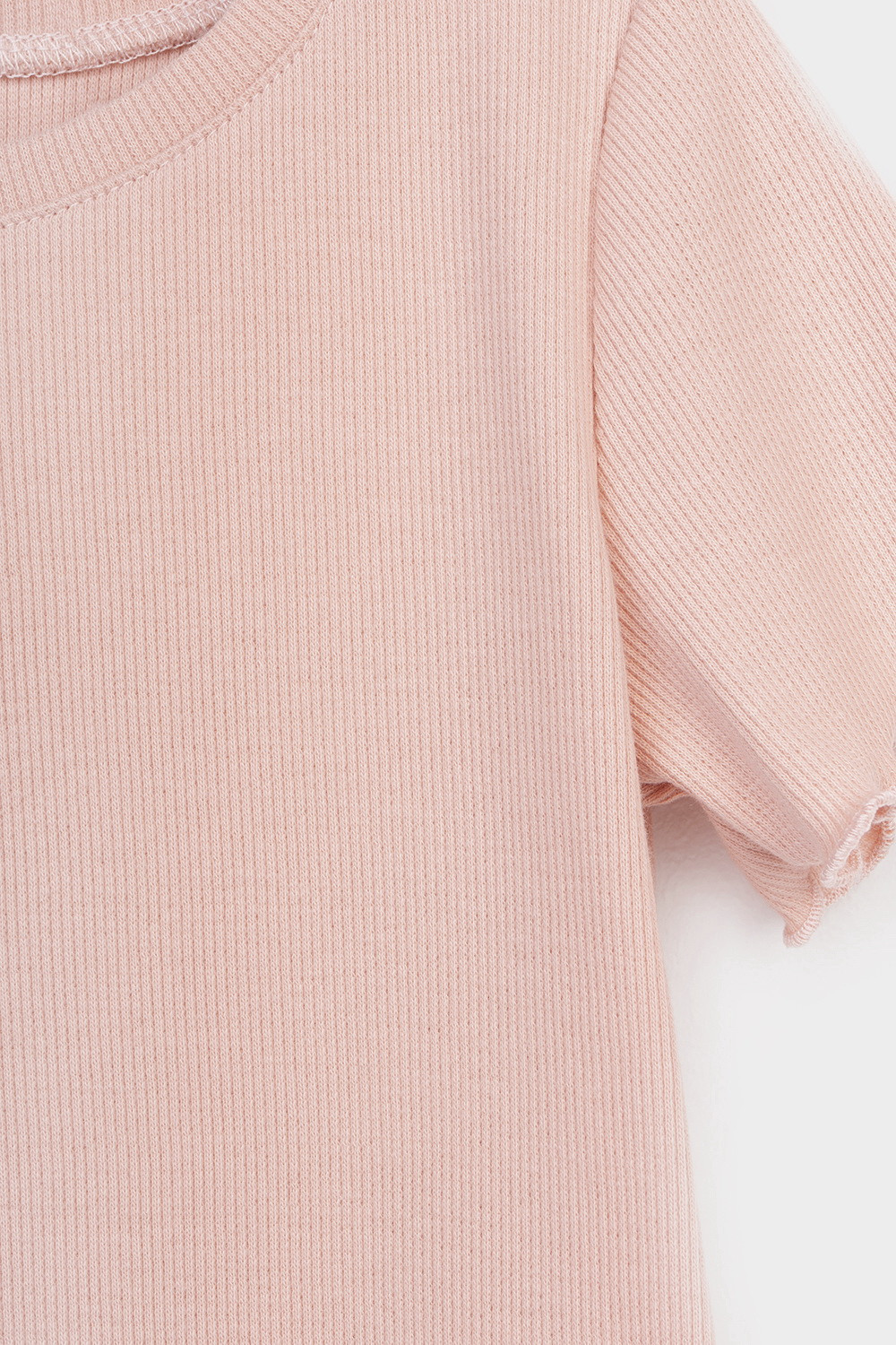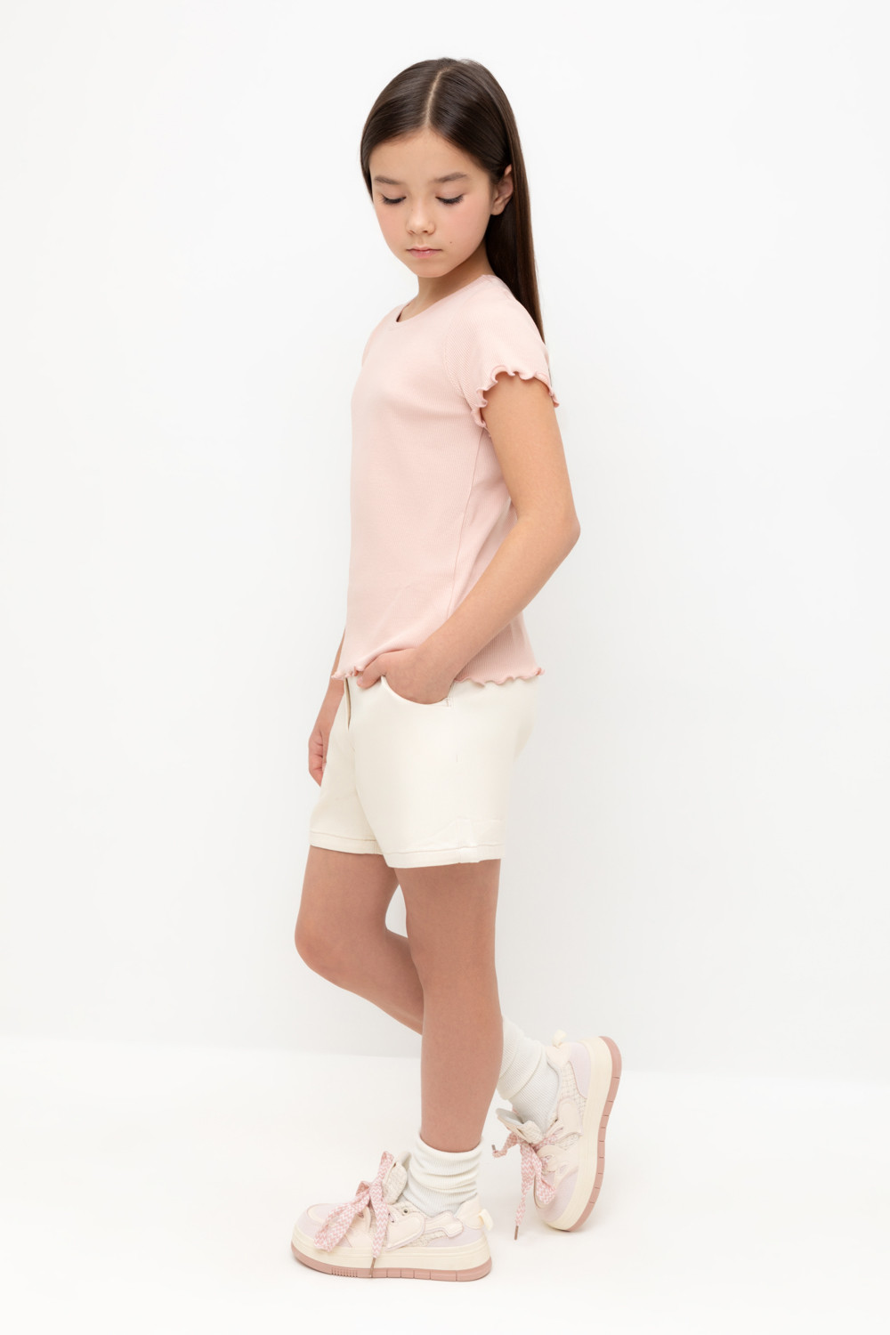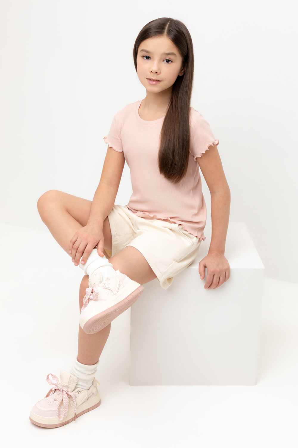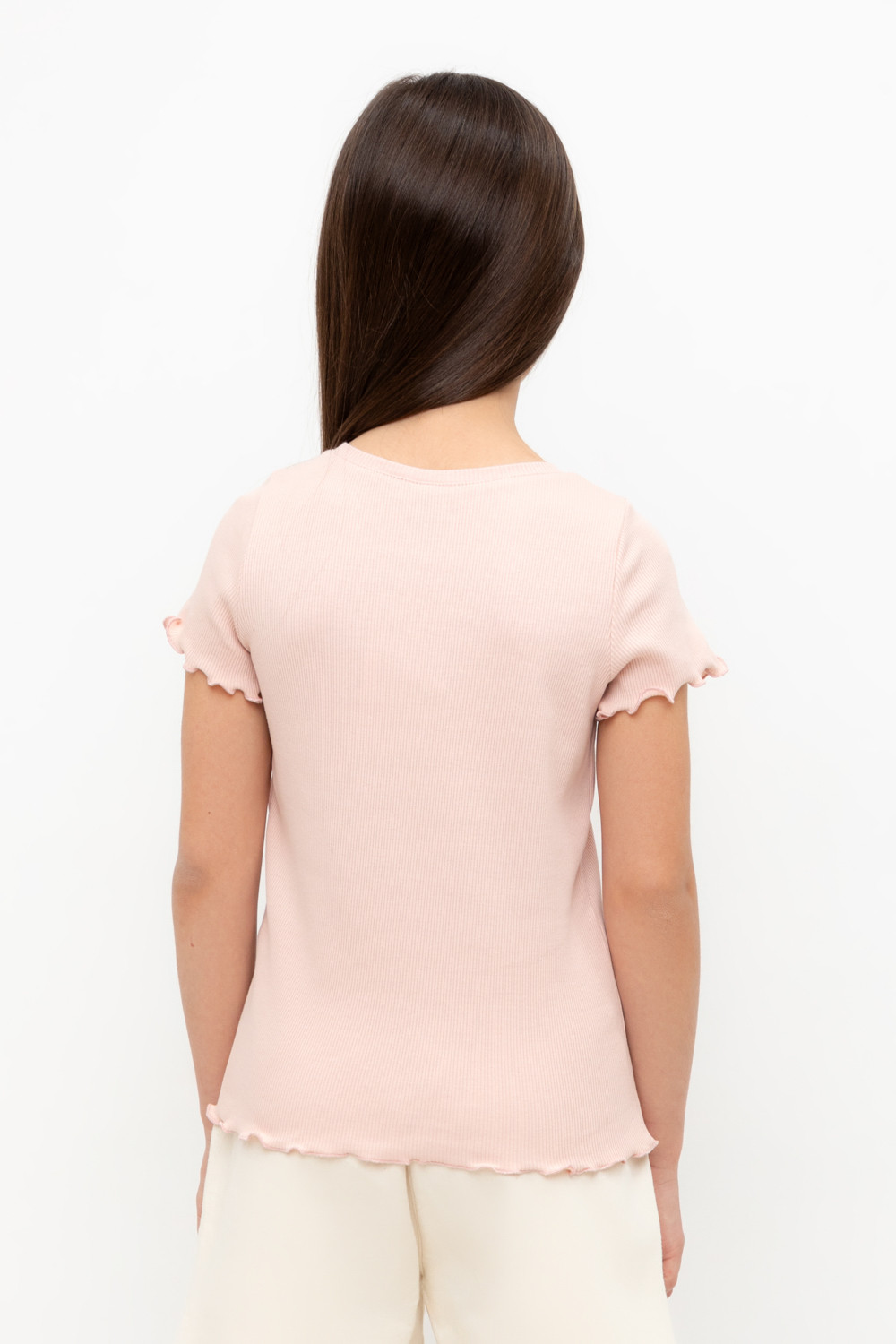 Футболка для девочки из эластичного трикотажа в рубчик. Изделие сохраняет цвет и форму после многократных стирок.
