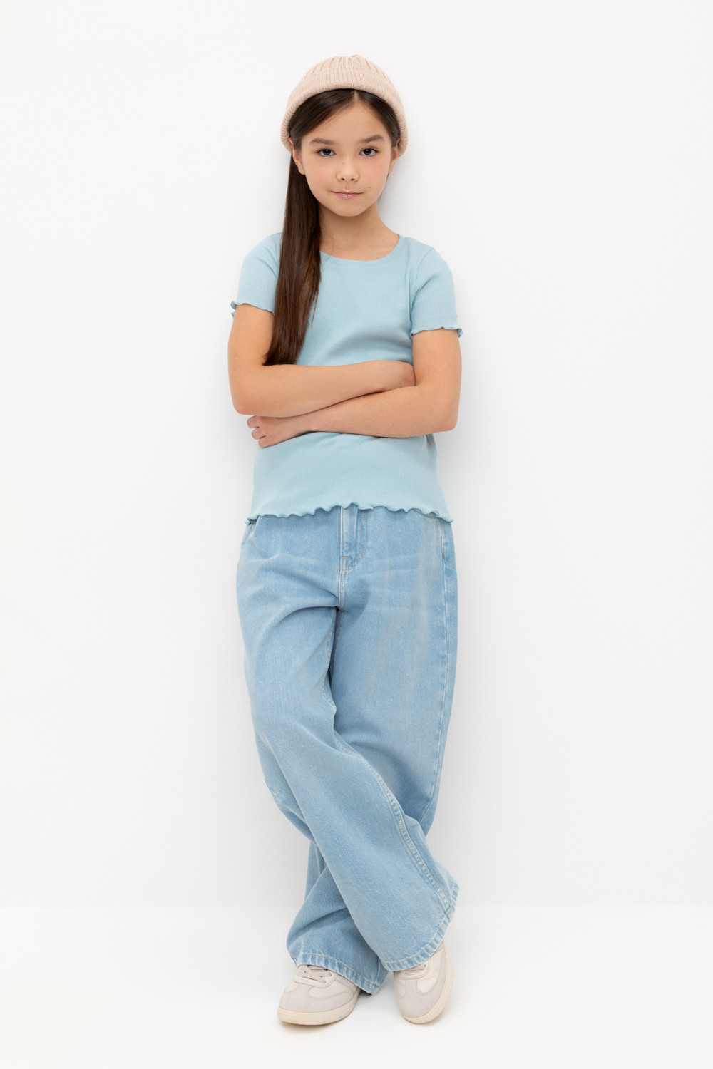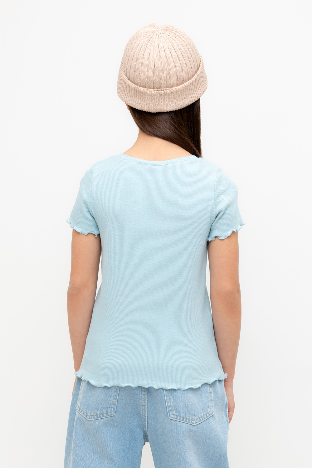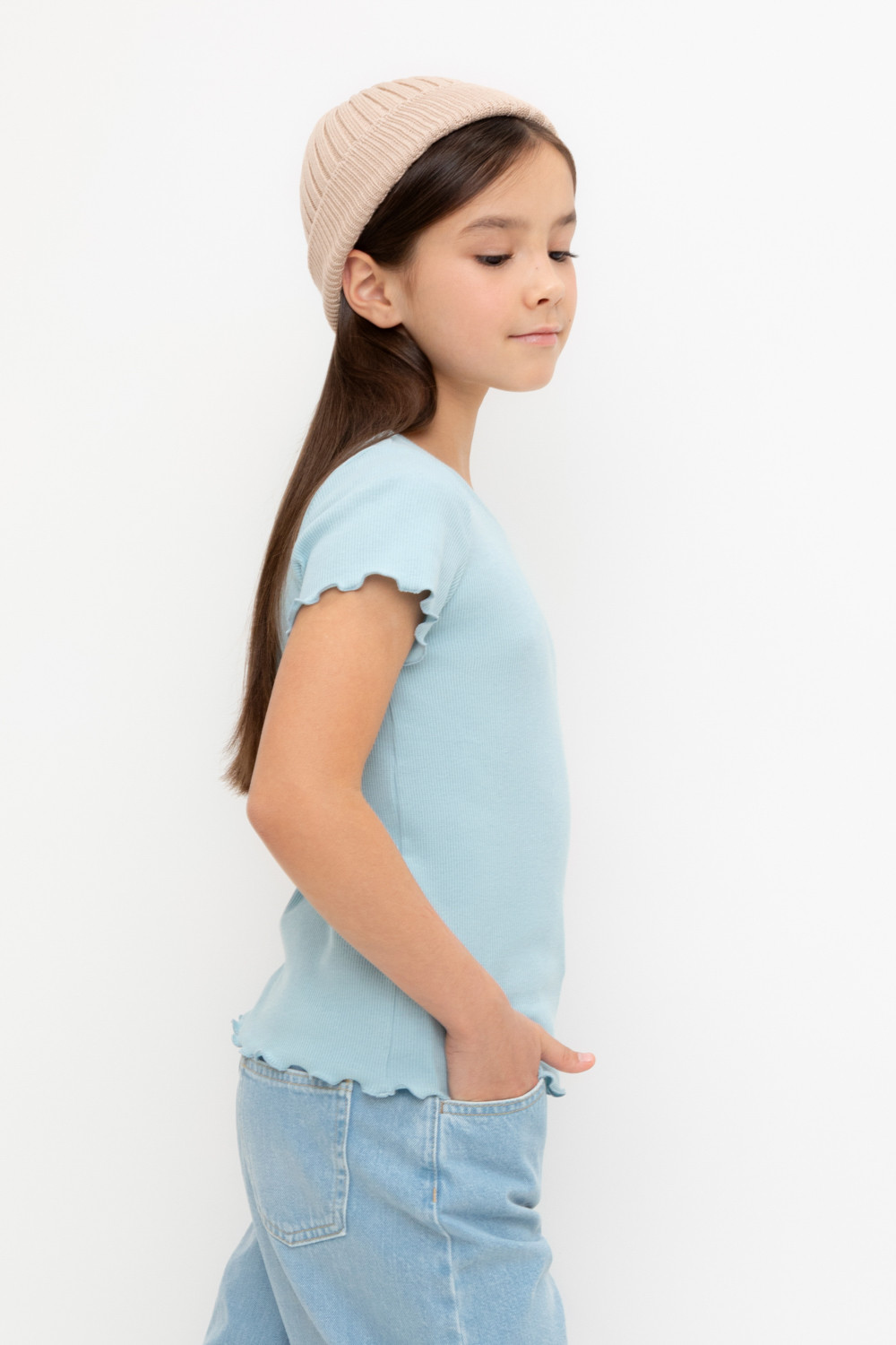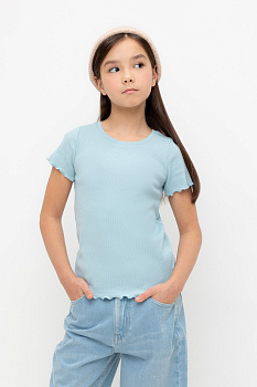 Футболка для девочки из эластичного трикотажа в рубчик.  Изделие сохраняет цвет и форму после многократных стирок.